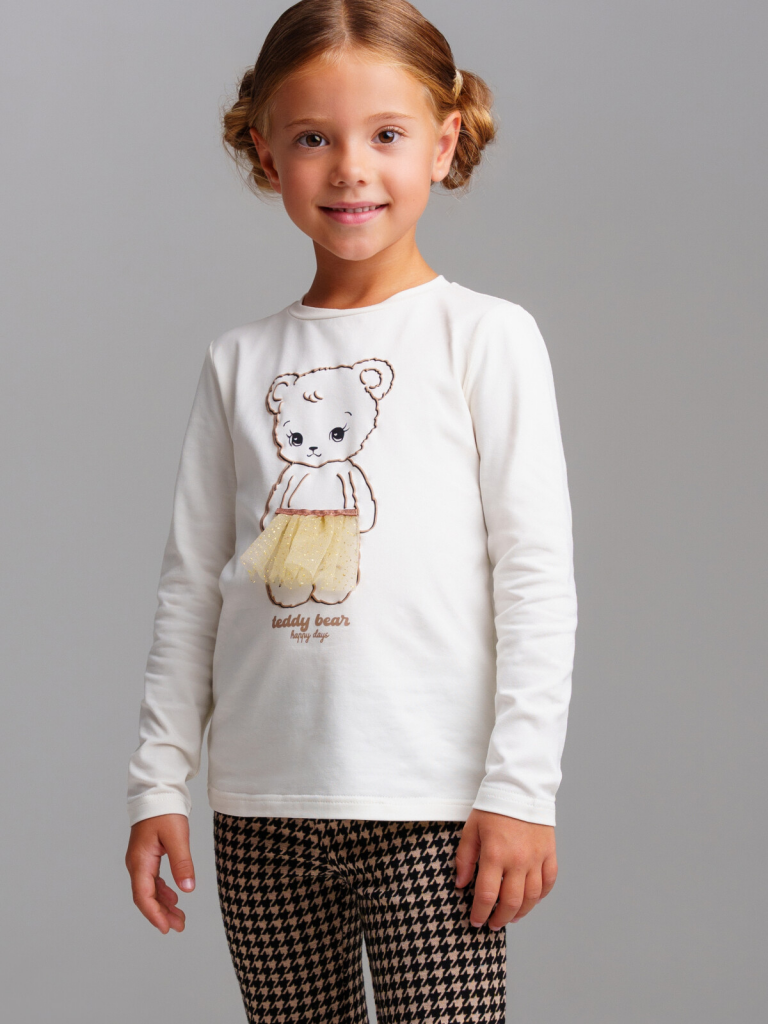 > Фуфайка трикотажная для девочек (футболка с длинными рукавами) белый