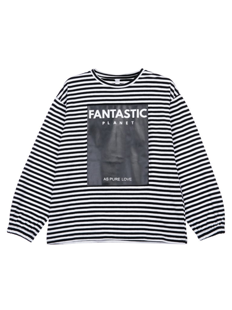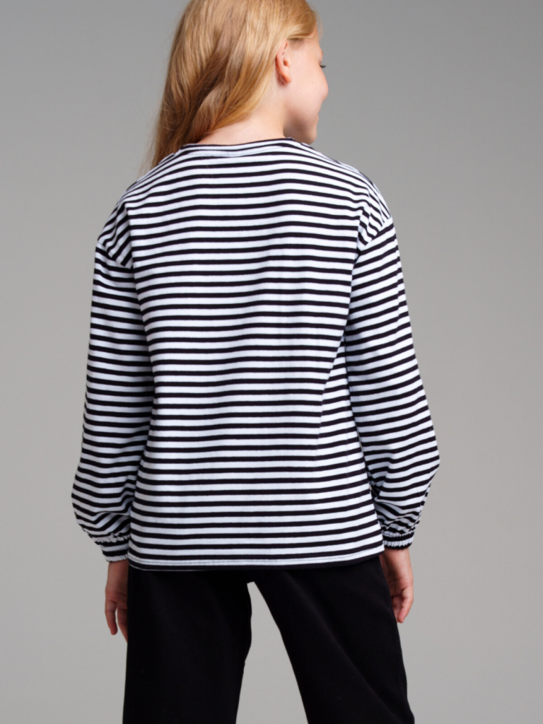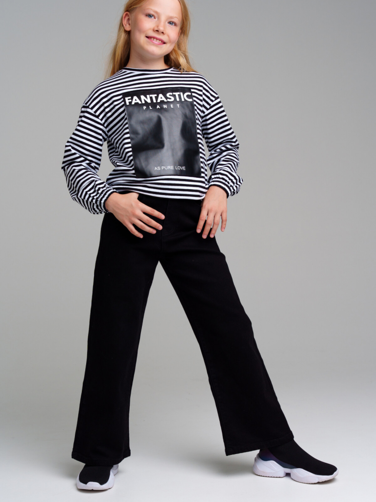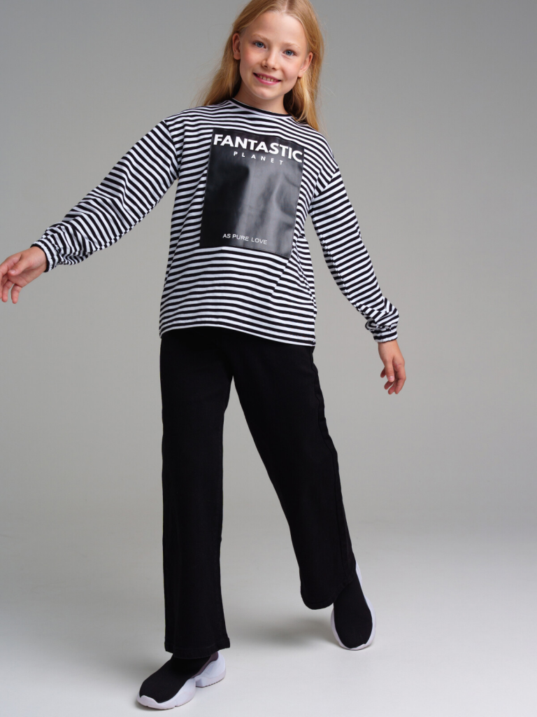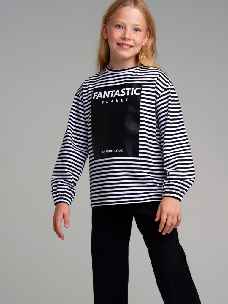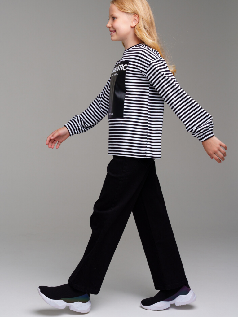 > Фуфайка трикотажная для девочек (футболка с длинными рукавами) черный,белый