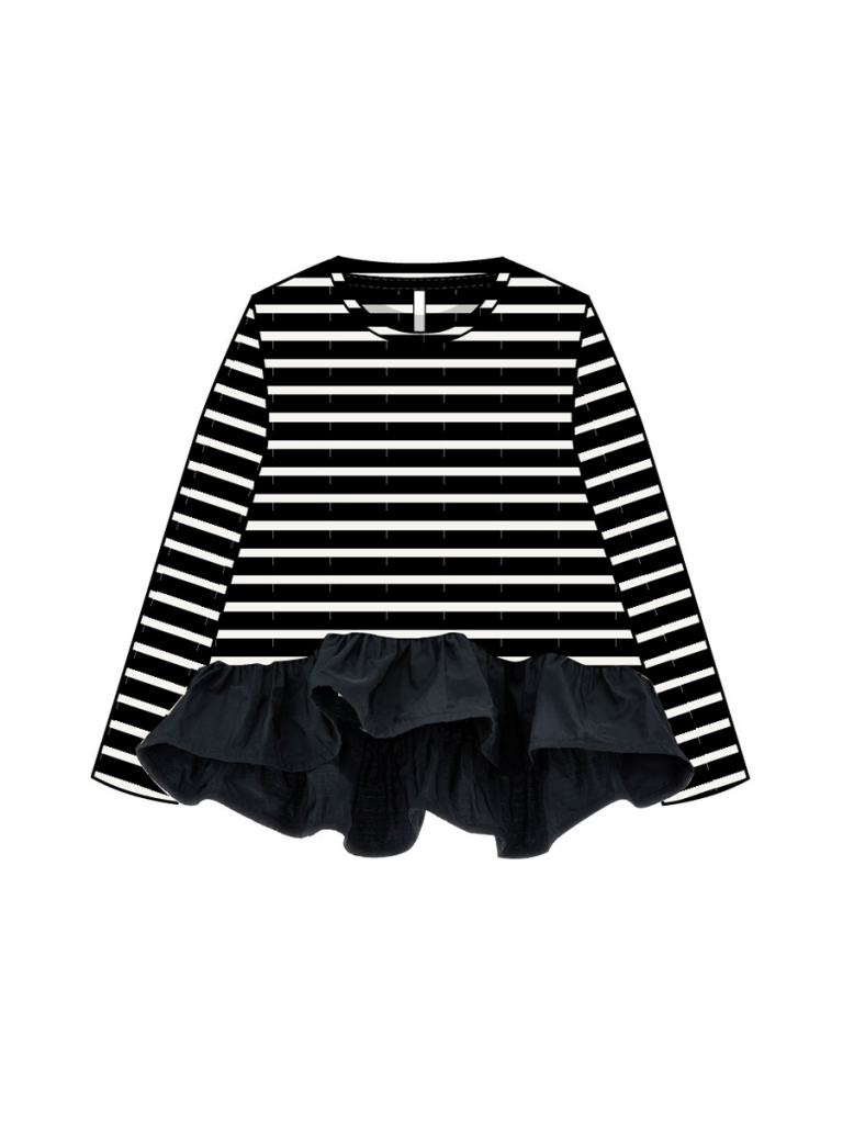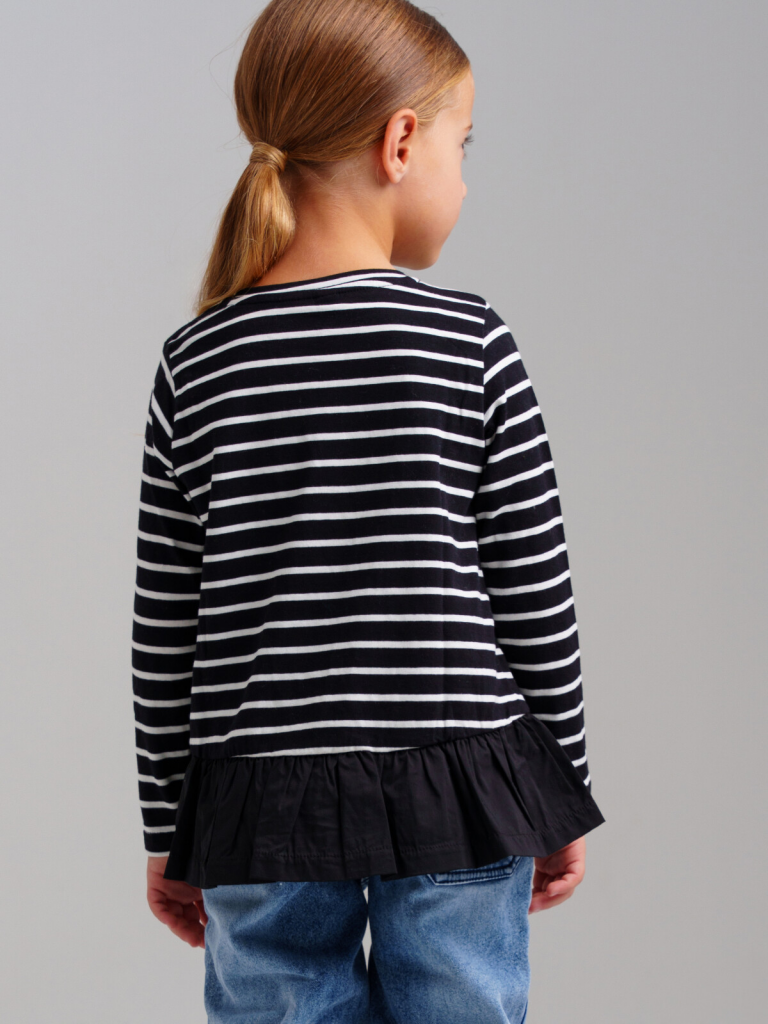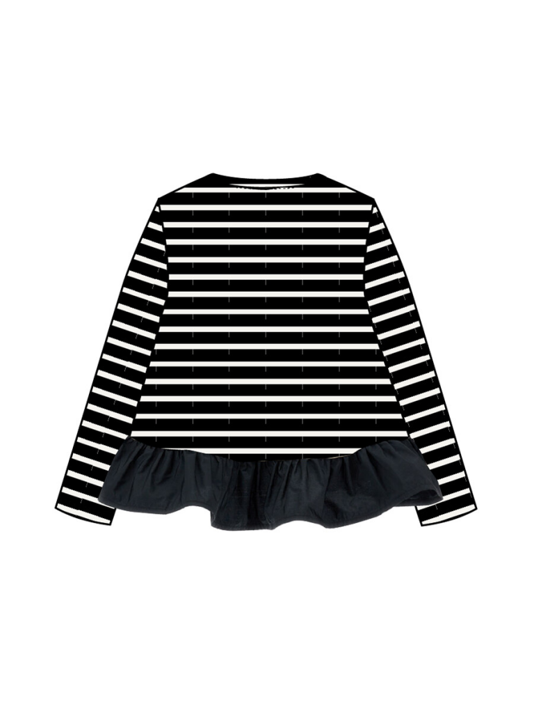 > Фуфайка трикотажная для девочек (футболка с длинными рукавами) черный,белый