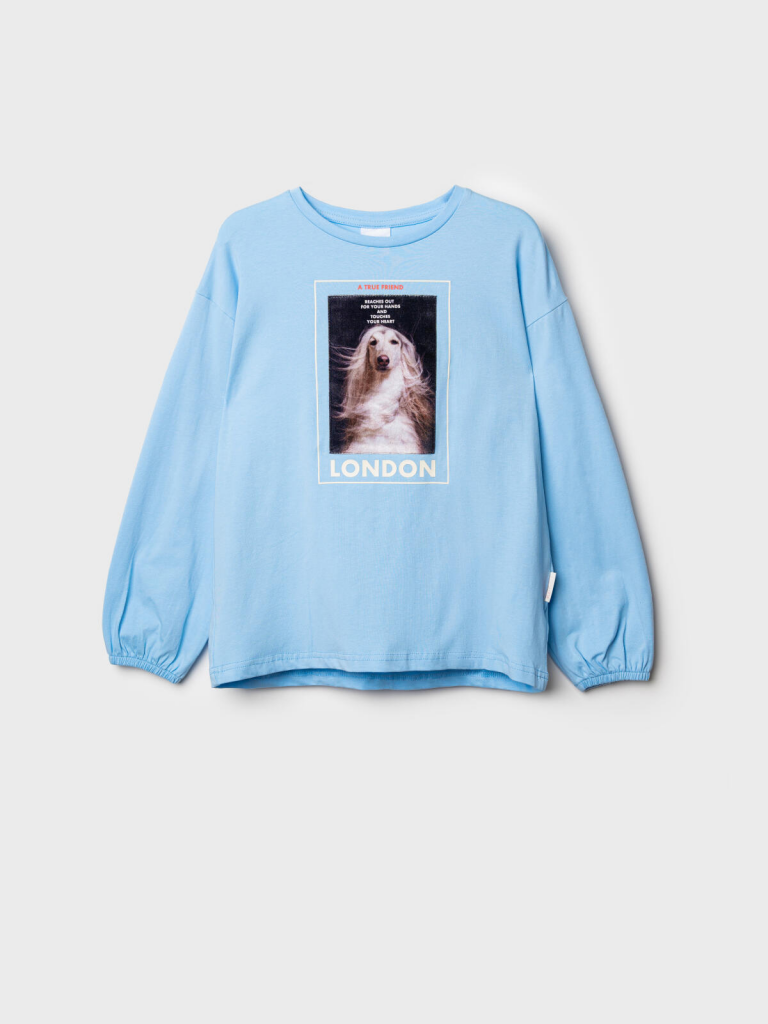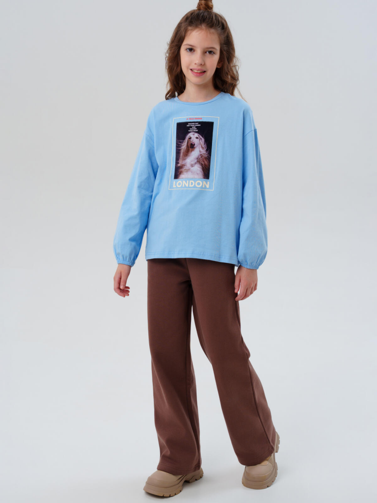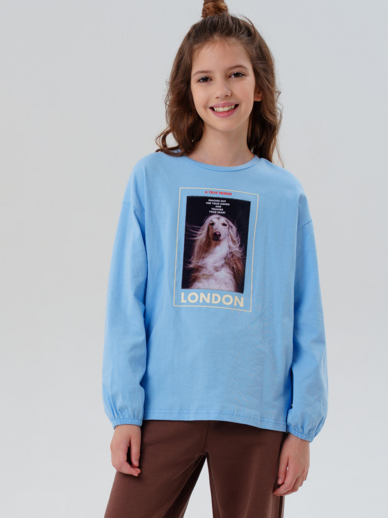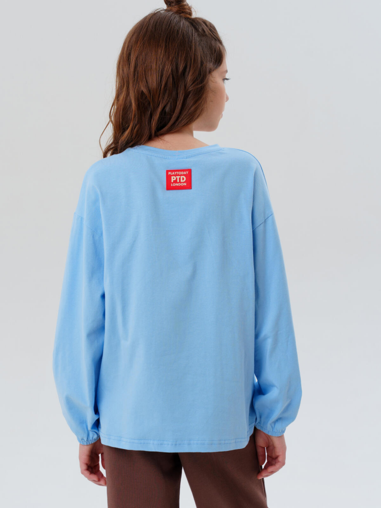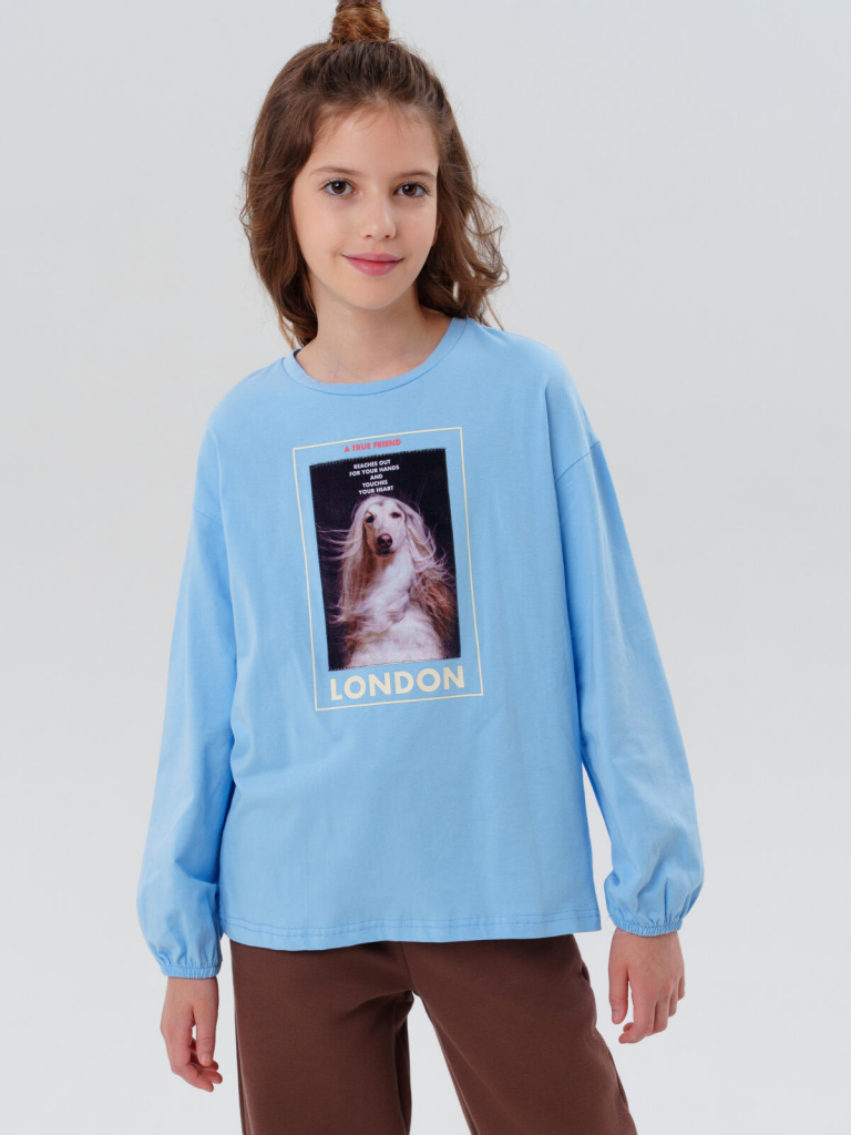 Фуфайка трикотажная для девочек (футболка с длинными рукавами) голубой