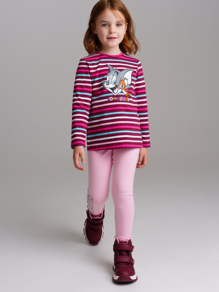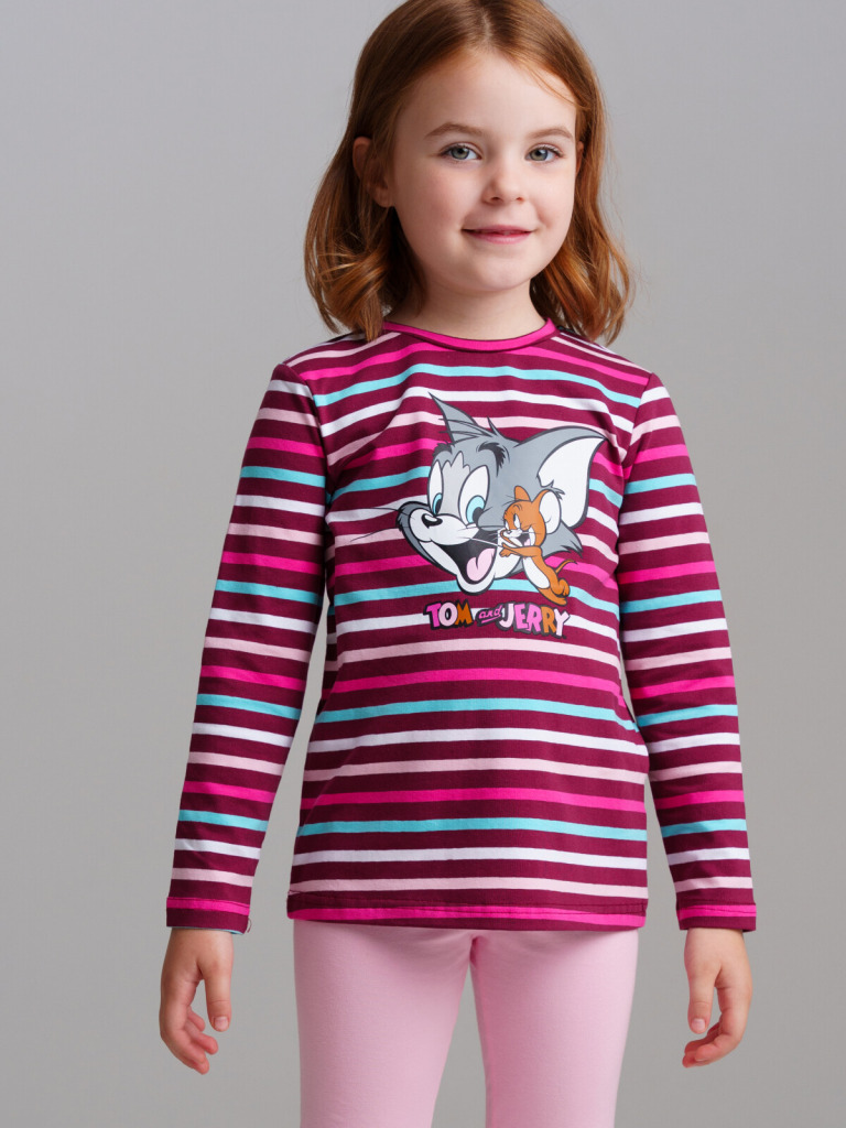 > Фуфайка трикотажная для девочек (футболка с длинными рукавами) разноцветный