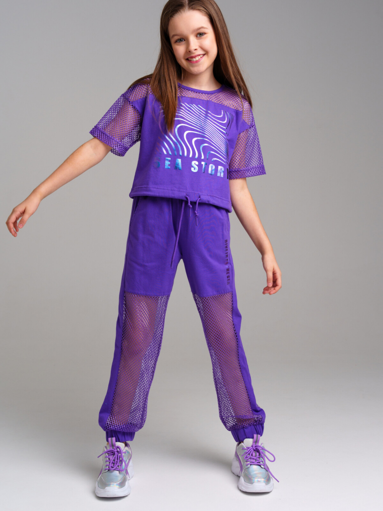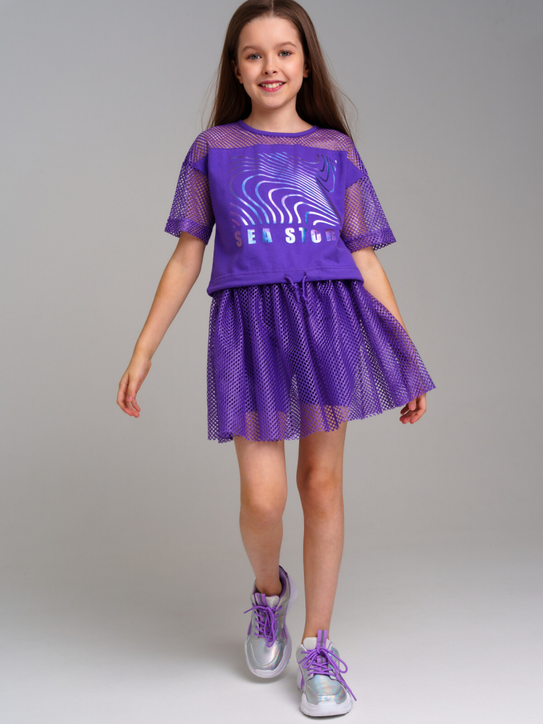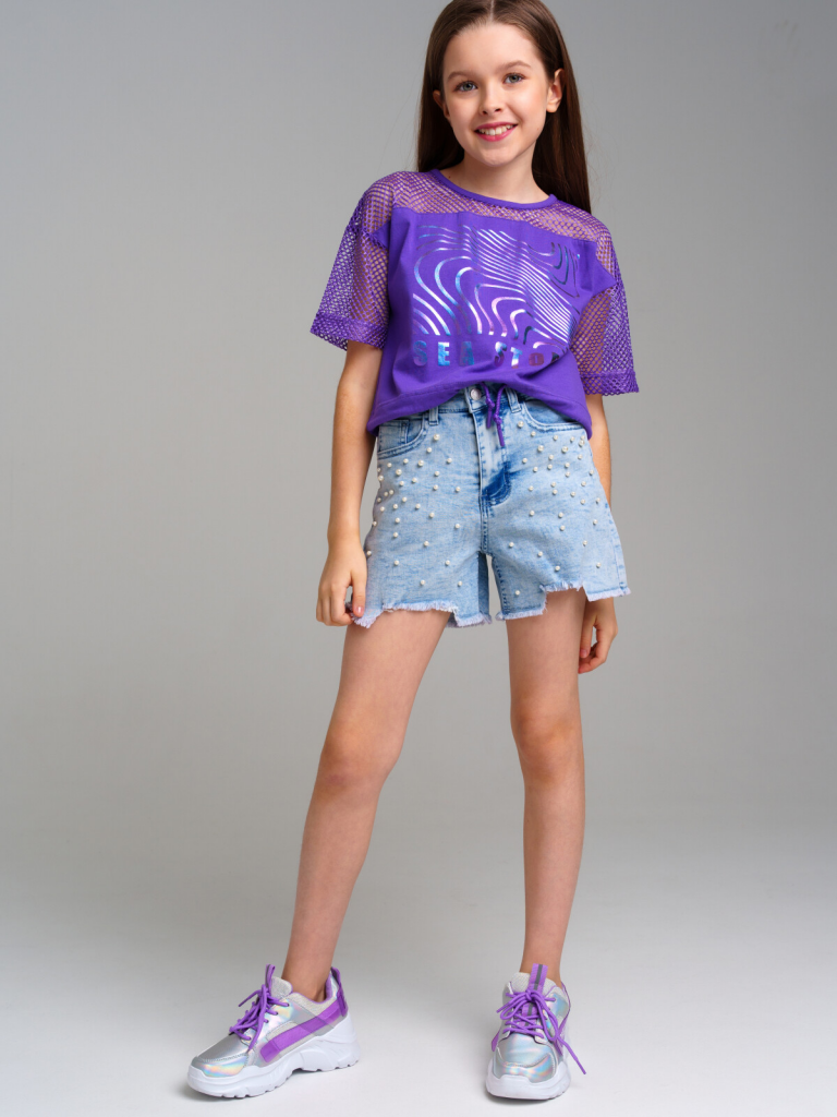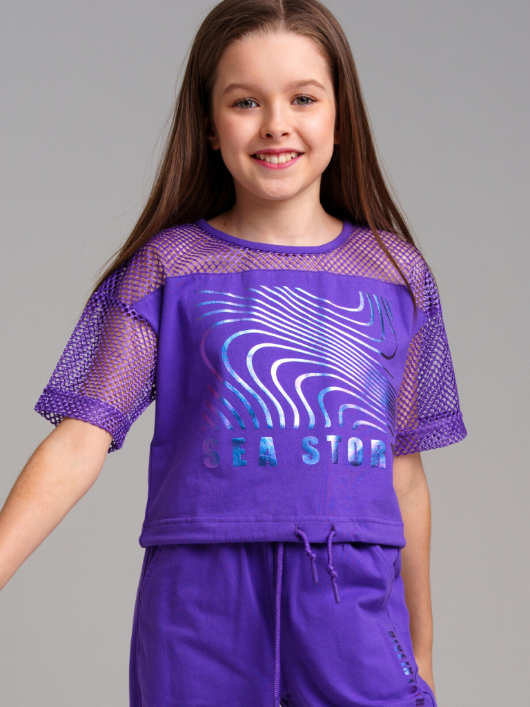 > Фуфайка трикотажная для девочек (футболка) сиреневый
