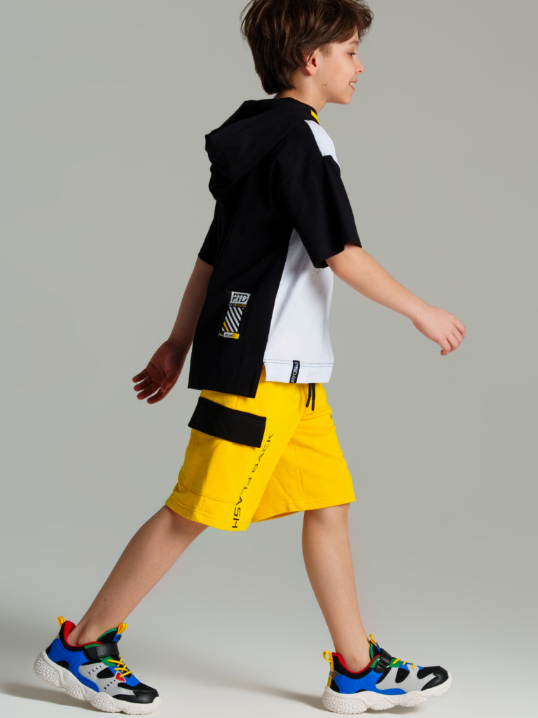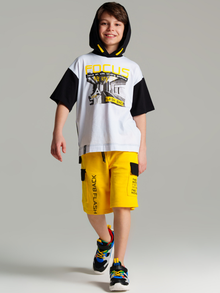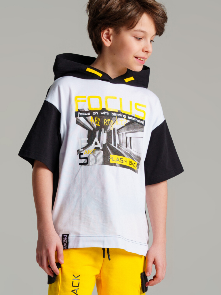 Фуфайка трикотажная для мальчиков (футболка) белый,черный,жёлтый