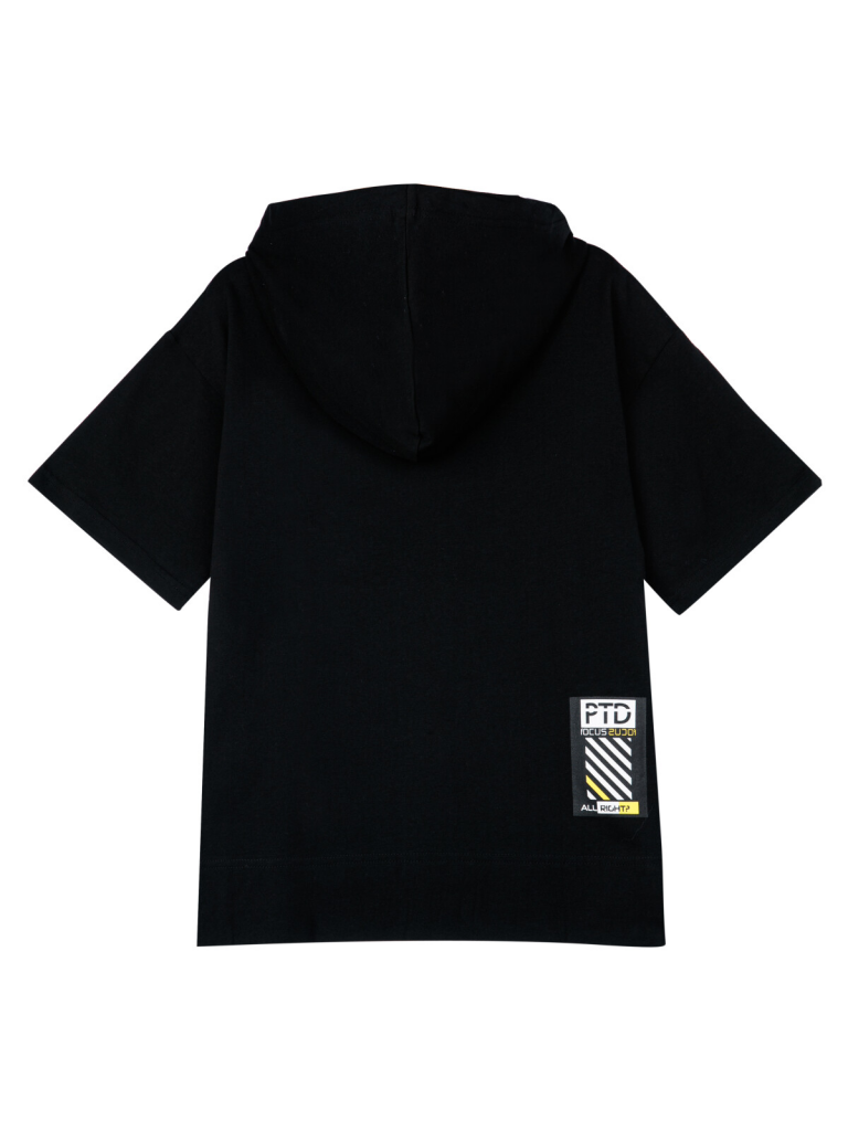 Футболка из качественного и приятного на ощупь трикотажа джерси. Силуэт oversize. С капюшоном. Высокое содержание хлопка 95%. Благодаря наличию эластана в составе ткани, изделие проще в уходе и держит форму. Принт сохраняет первоначальный вид даже после многочисленных стирок.