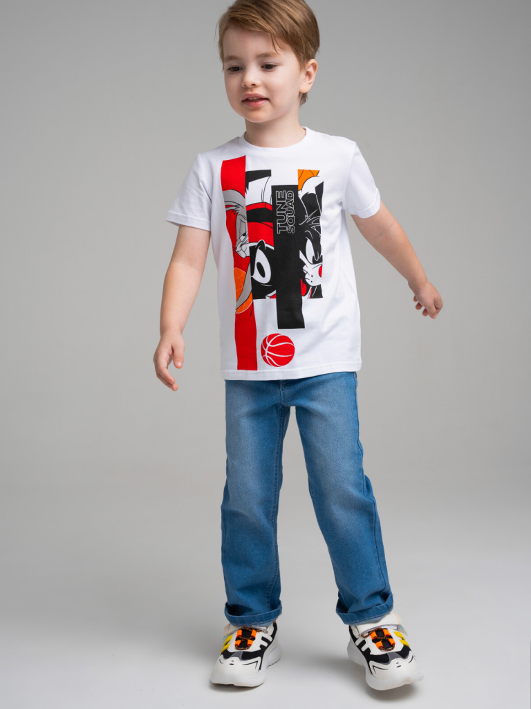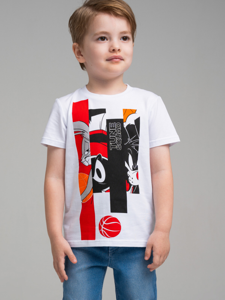 Футболка детская для мальчика. Футболка из качественного и приятного на ощупь трикотажа джерси с высоким содержанием хлопка 95%. Благодаря наличию эластана в составе ткани изделие проще в уходе и держит форму. Модель выполнена из качественного и приятного на ощупь трикотажа.