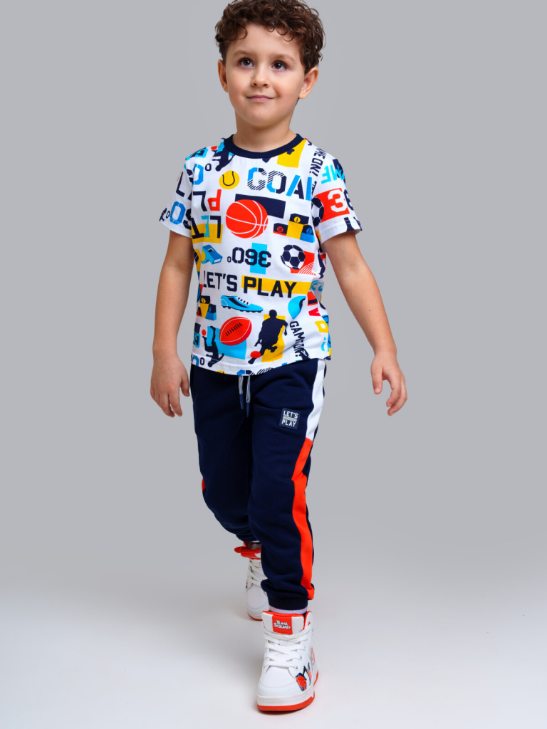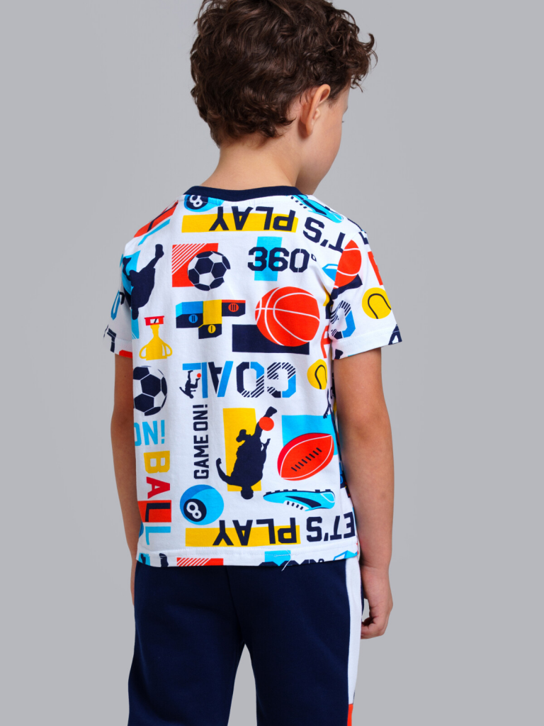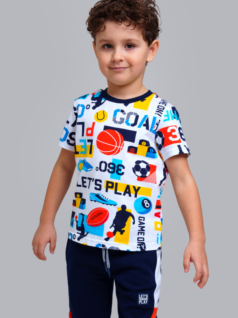 Футболка детская для мальчика. Футболка из качественного и приятного на ощупь трикотажа джерси с высоким содержанием хлопка 95%. Благодаря наличию эластана в составе ткани изделие проще в уходе и держит форму. Модель выполнена из качественного и приятного на ощупь трикотажа.