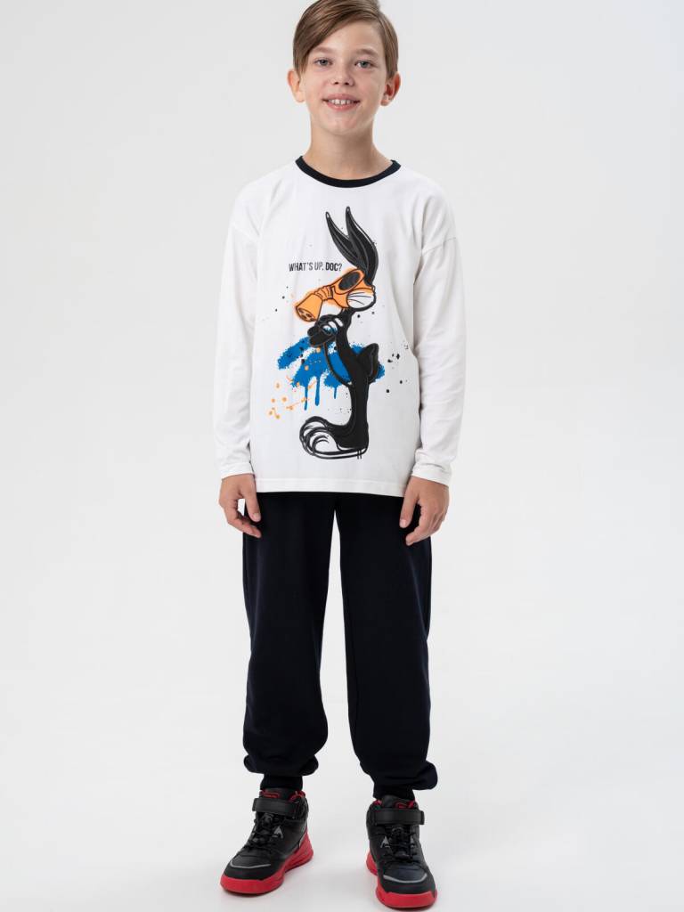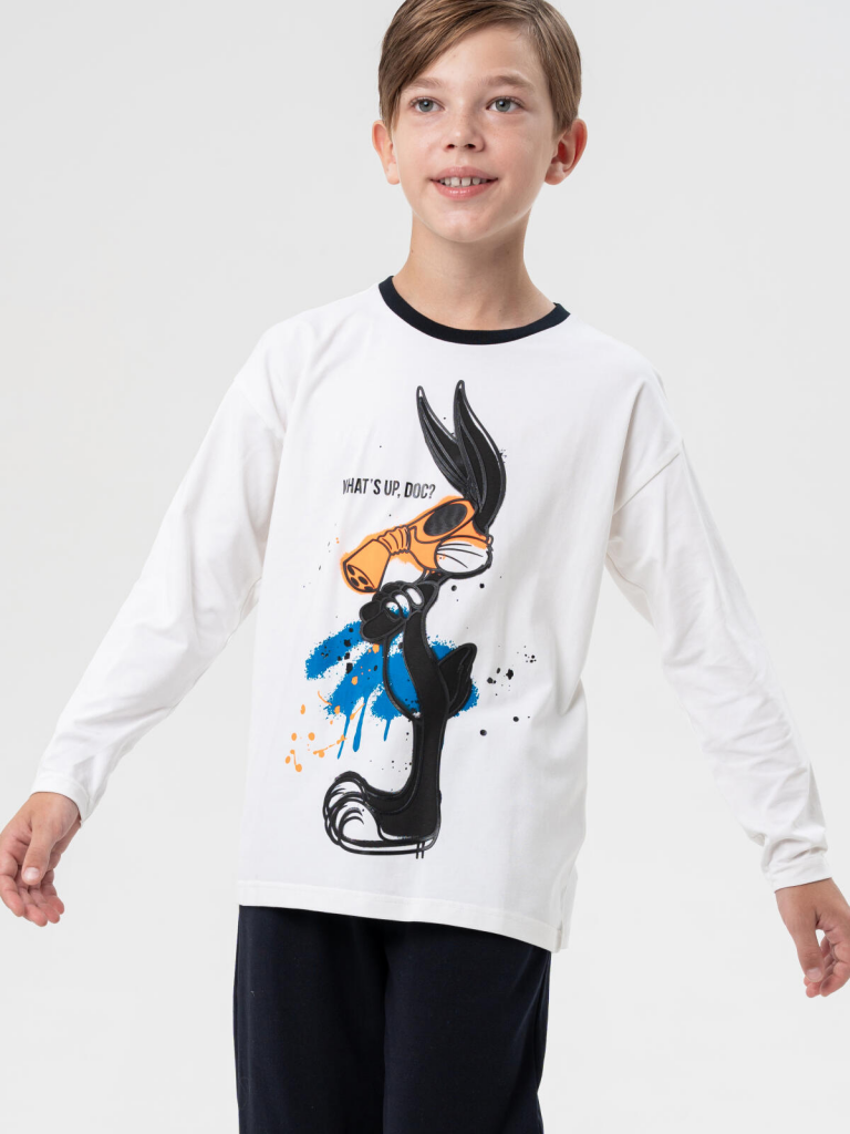 > Фуфайка трикотажная для мальчиков (футболка с длинными рукавами) белый