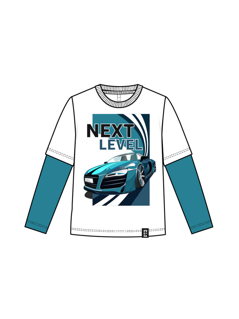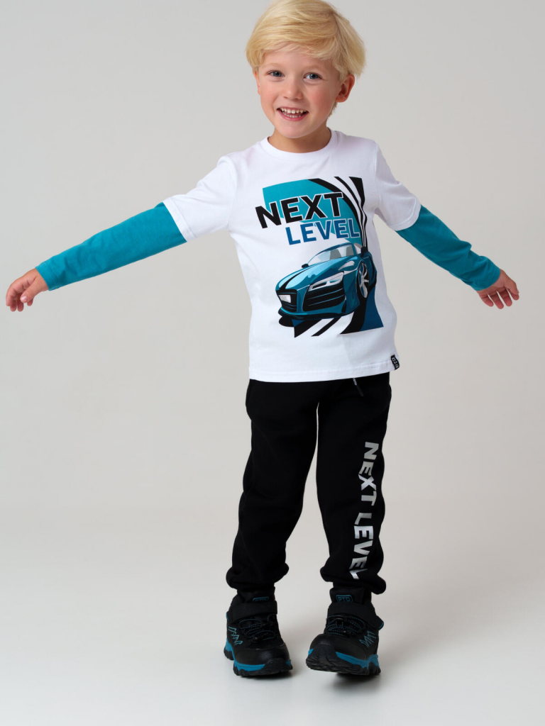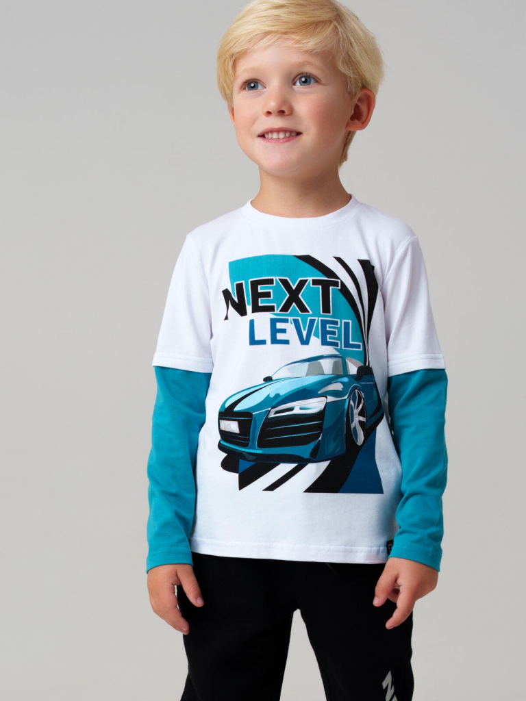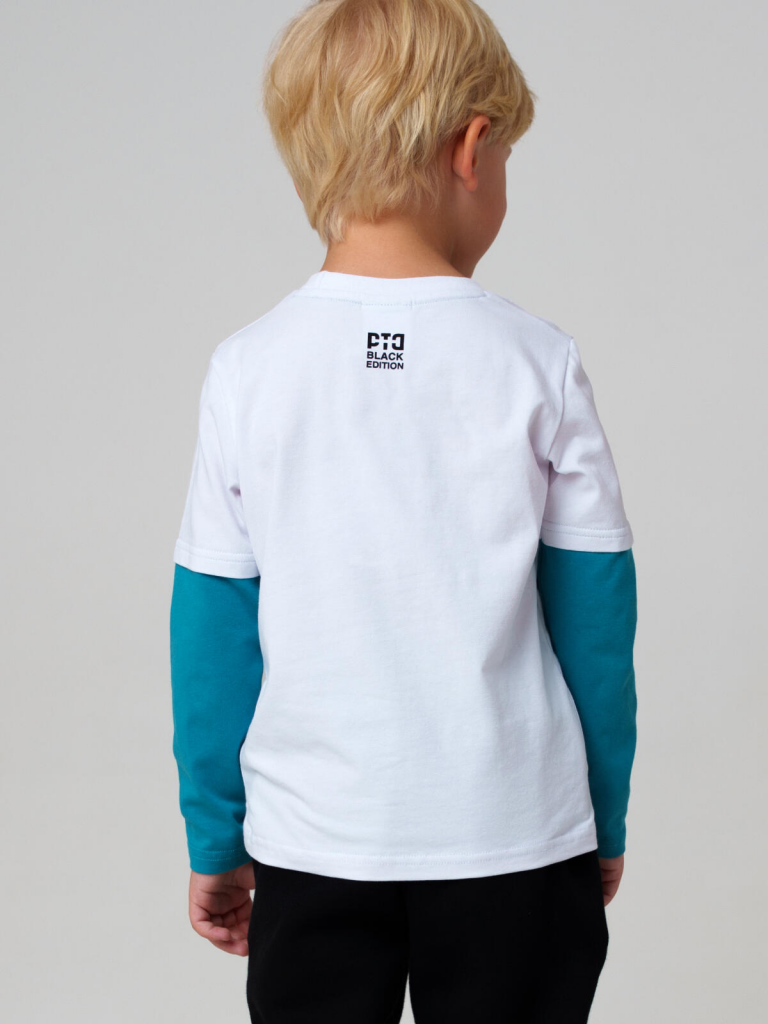 > Фуфайка трикотажная для мальчиков (футболка с длинными рукавами) белый,бирюзовый