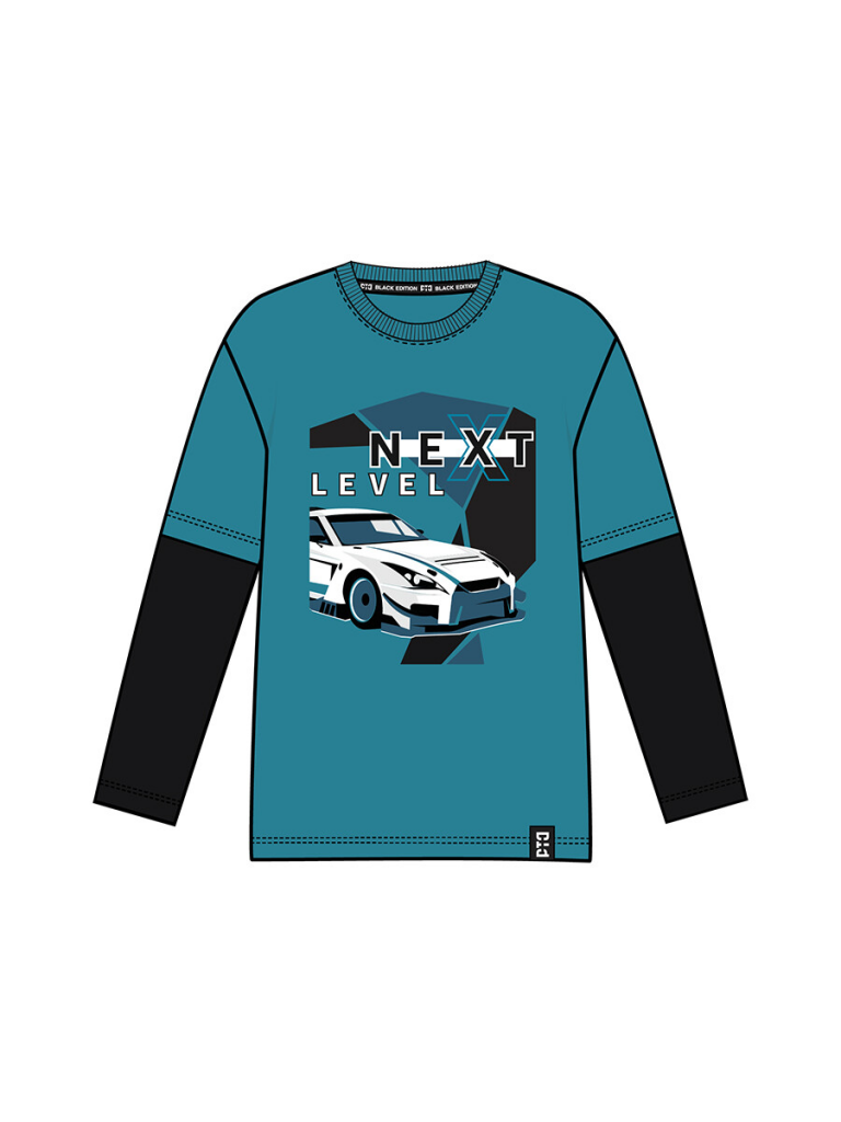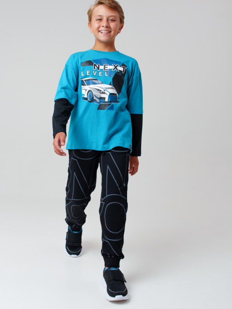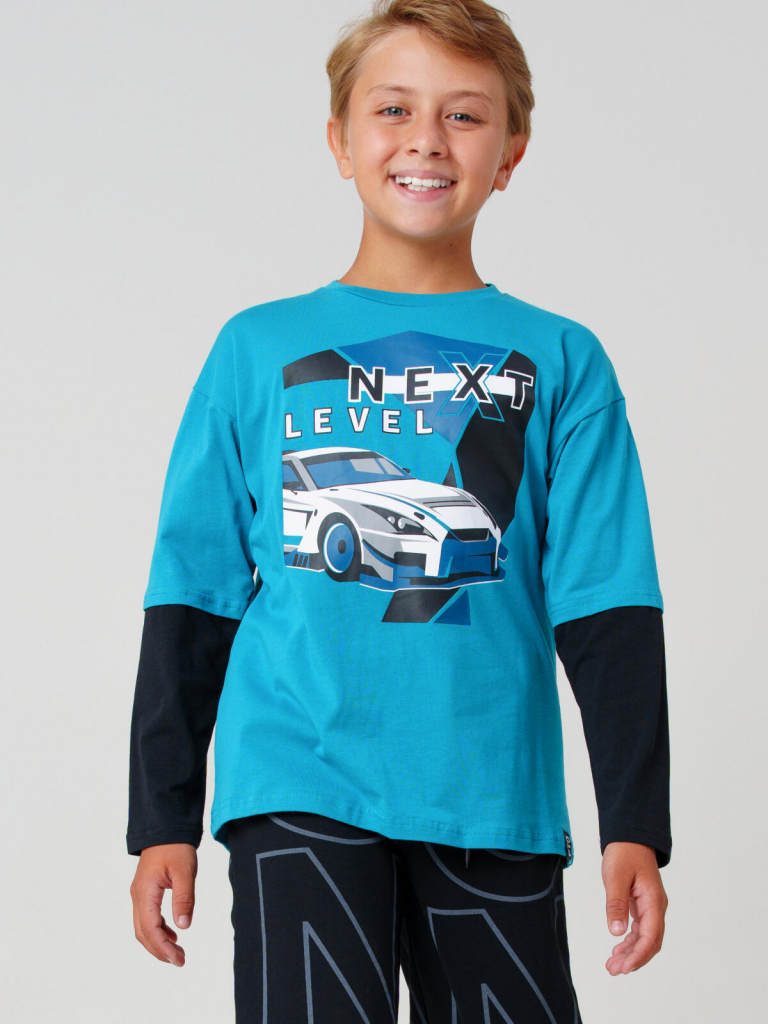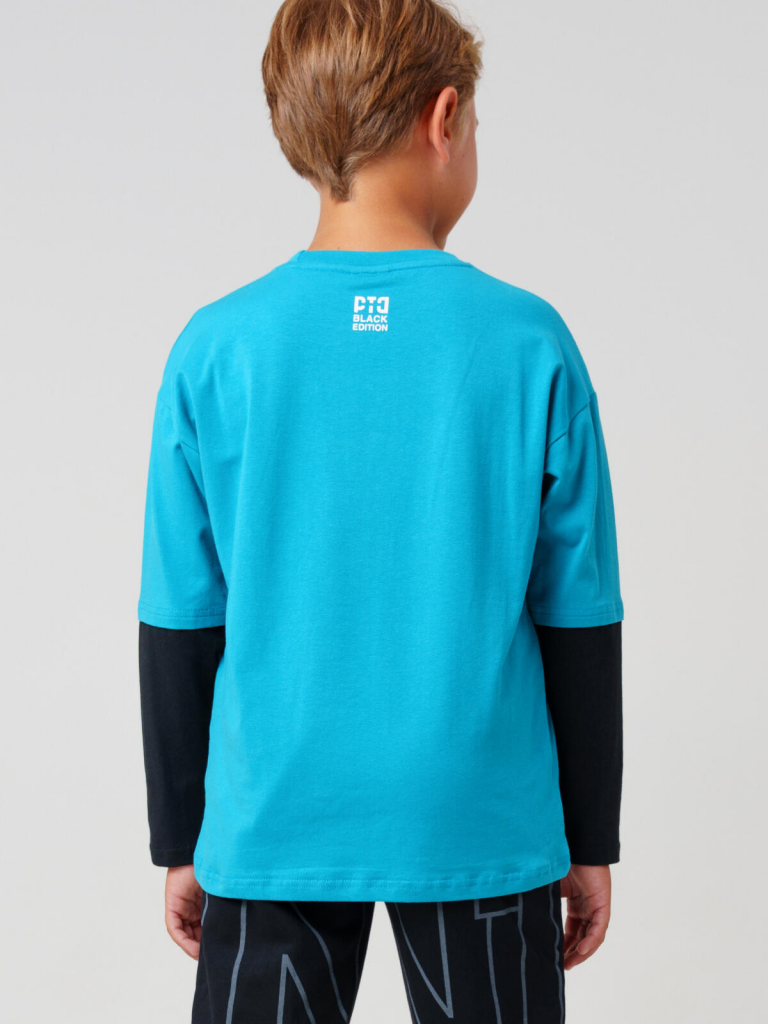 > Фуфайка трикотажная для мальчиков (футболка с длинными рукавами) черный,бирюзовый
