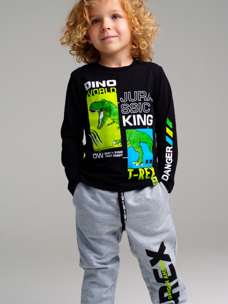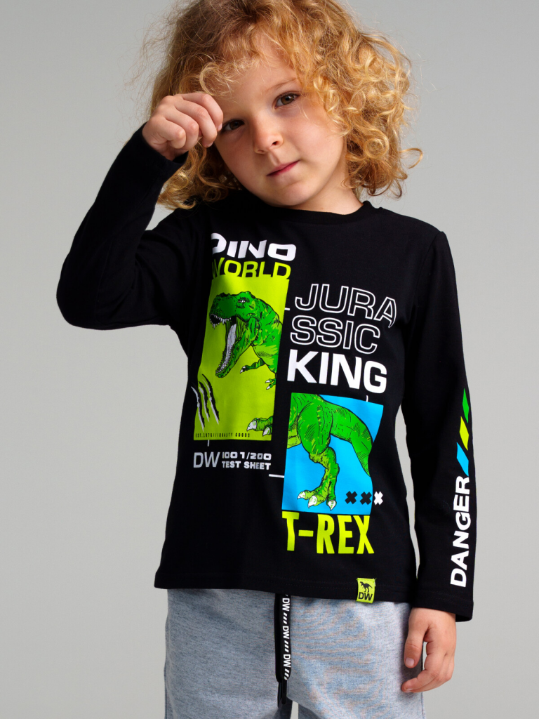 > Фуфайка трикотажная для мальчиков (футболка с длинными рукавами) черный,разноцветный