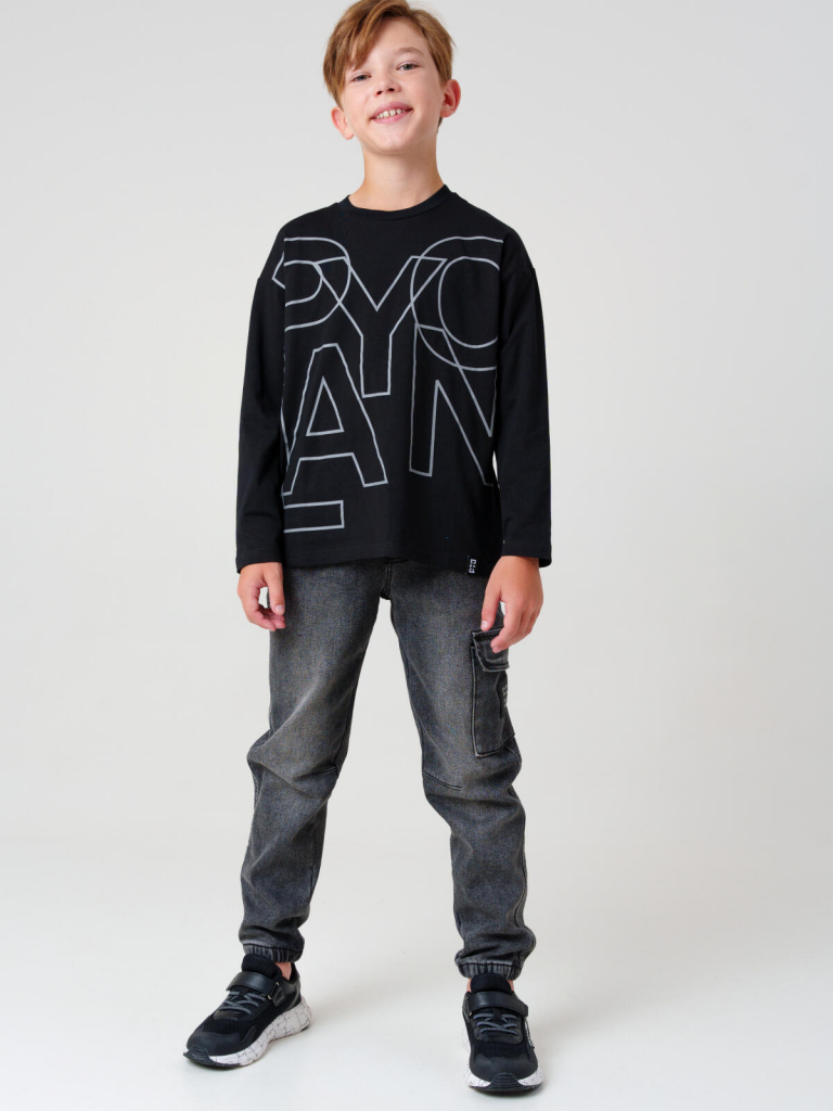 Фуфайка трикотажная для мальчиков (футболка с длинными рукавами) черный