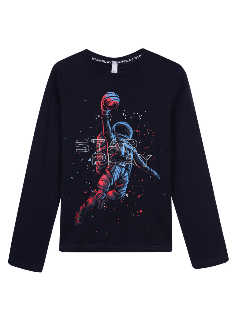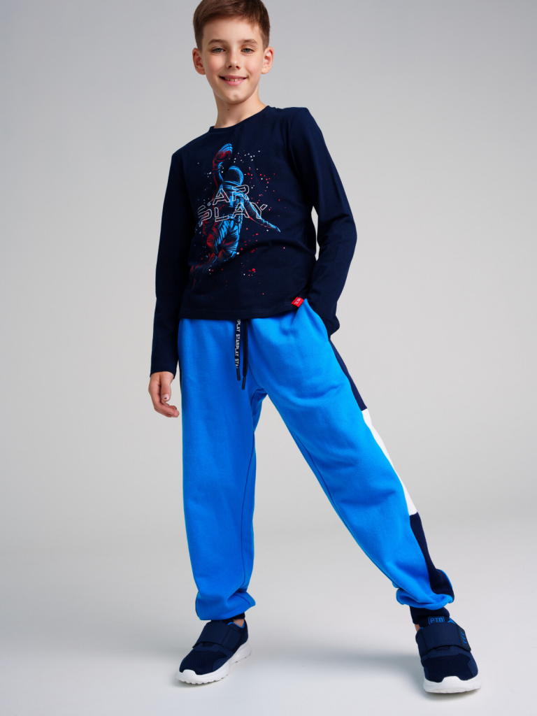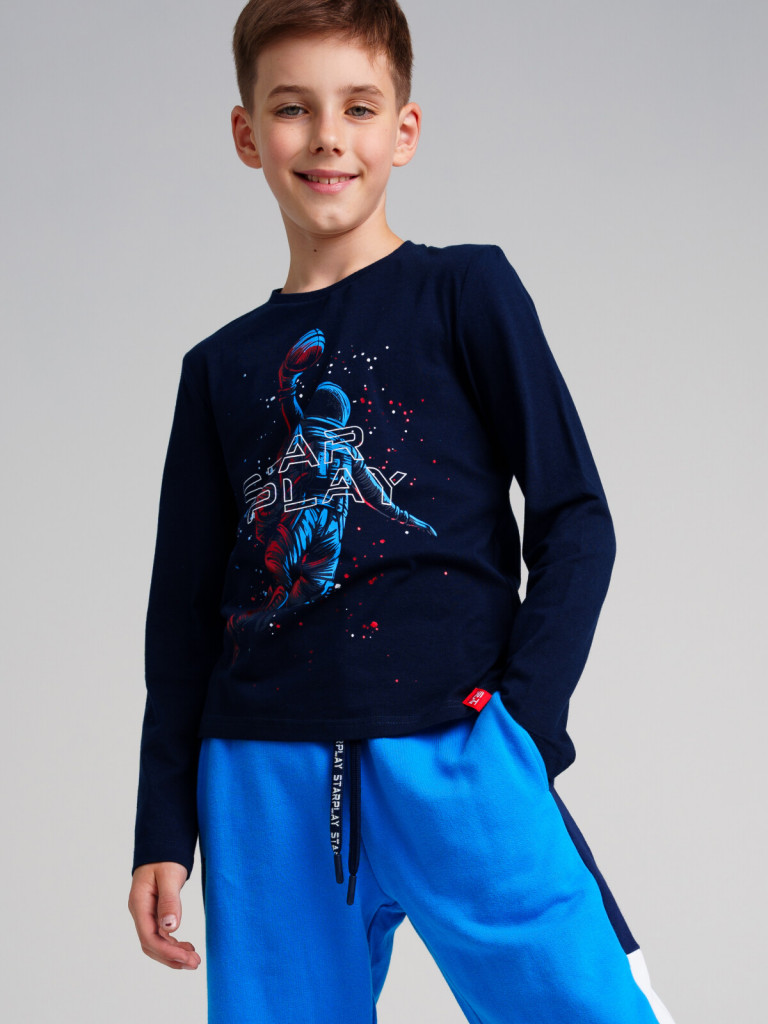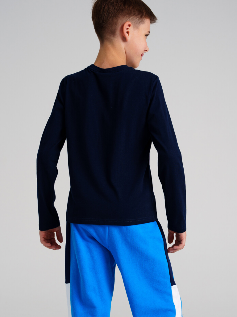 > Фуфайка трикотажная для мальчиков (футболка с длинными рукавами) тёмно-синий