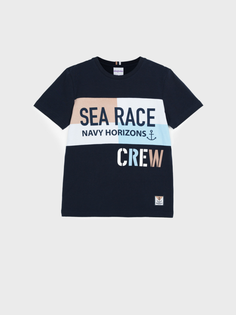 > Фуфайка трикотажная для мальчиков (футболка) тёмно-синий,белый