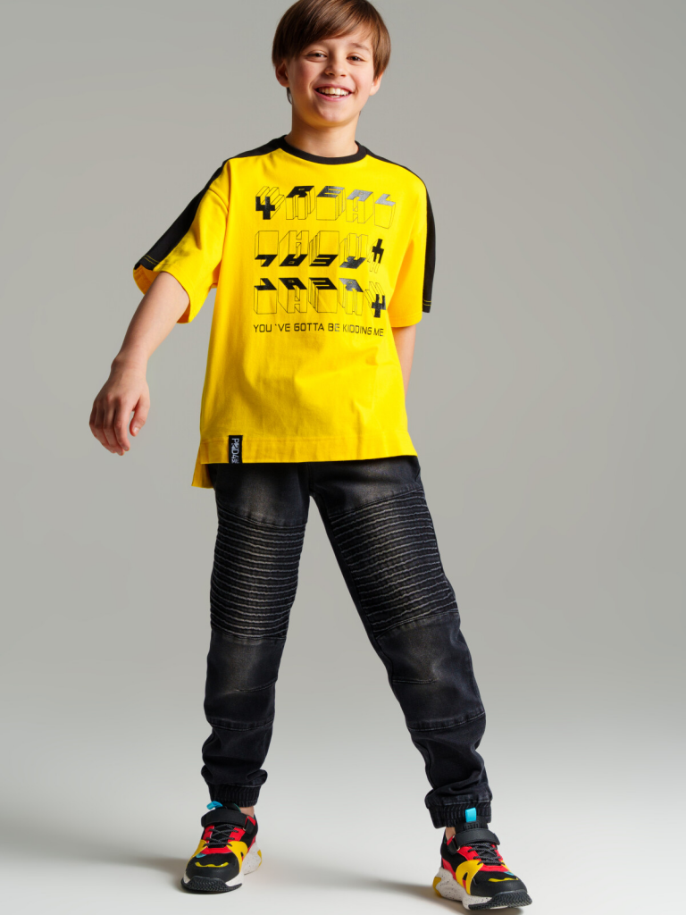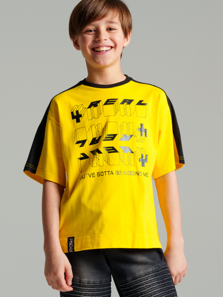> Фуфайка трикотажная для мальчиков (футболка) жёлтый,черный