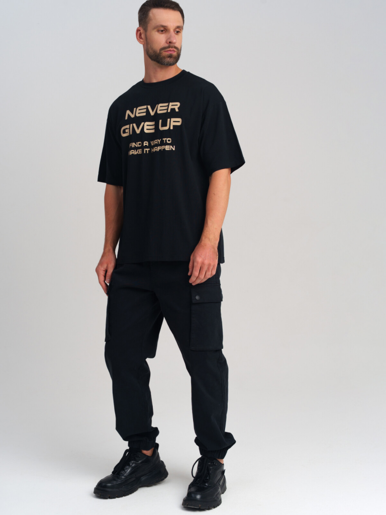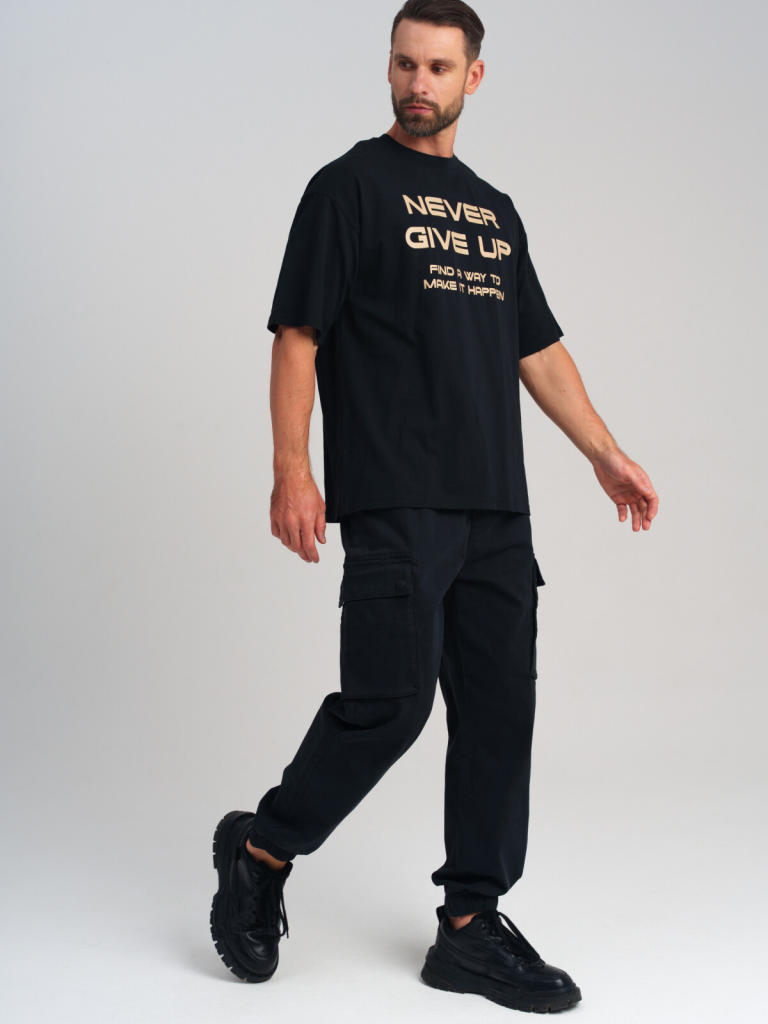 Фуфайка трикотажная для мужчин (футболка) черный,бежевый