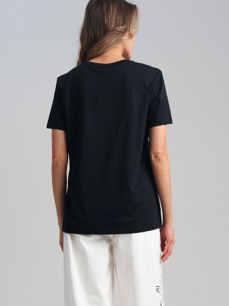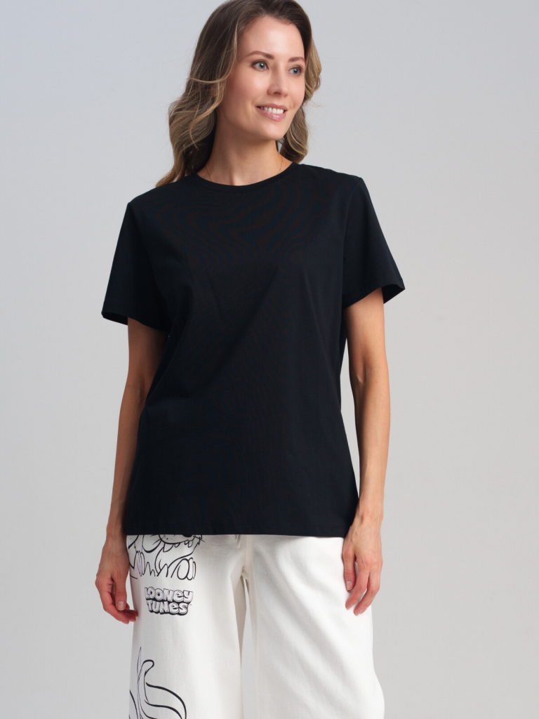 Футболка женская. Базовая женская футболка из 100% хлопка. Модель выполнена из качественного и приятного на ощупь трикотажа.