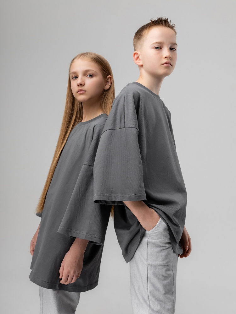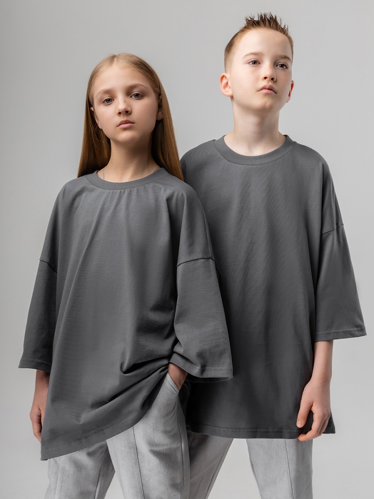Футболка для детей школьного возраста. Футболка оверсайз, с втачным коротким рукавом. Горловина футболки округлой формы. Состав: кулирная гладь 100% хлопок