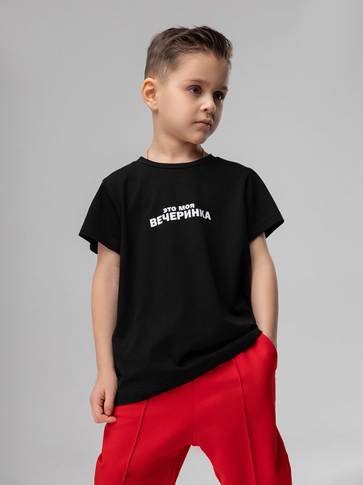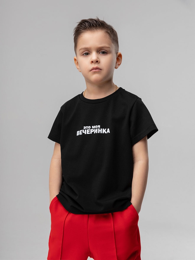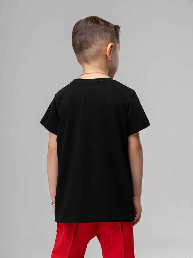 Детская футболка. Детали: короткие рукава, полуприлегающий покрой, округлый вырез горловины. Состав: кулирная гладь 92% хлопок 8% лайкра