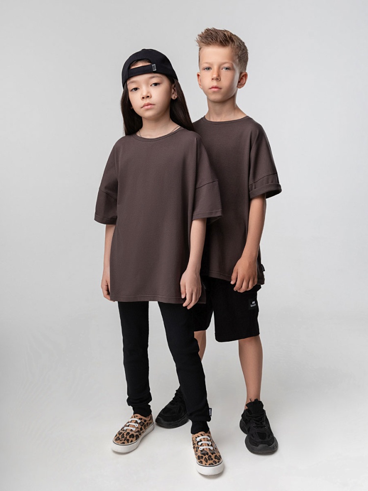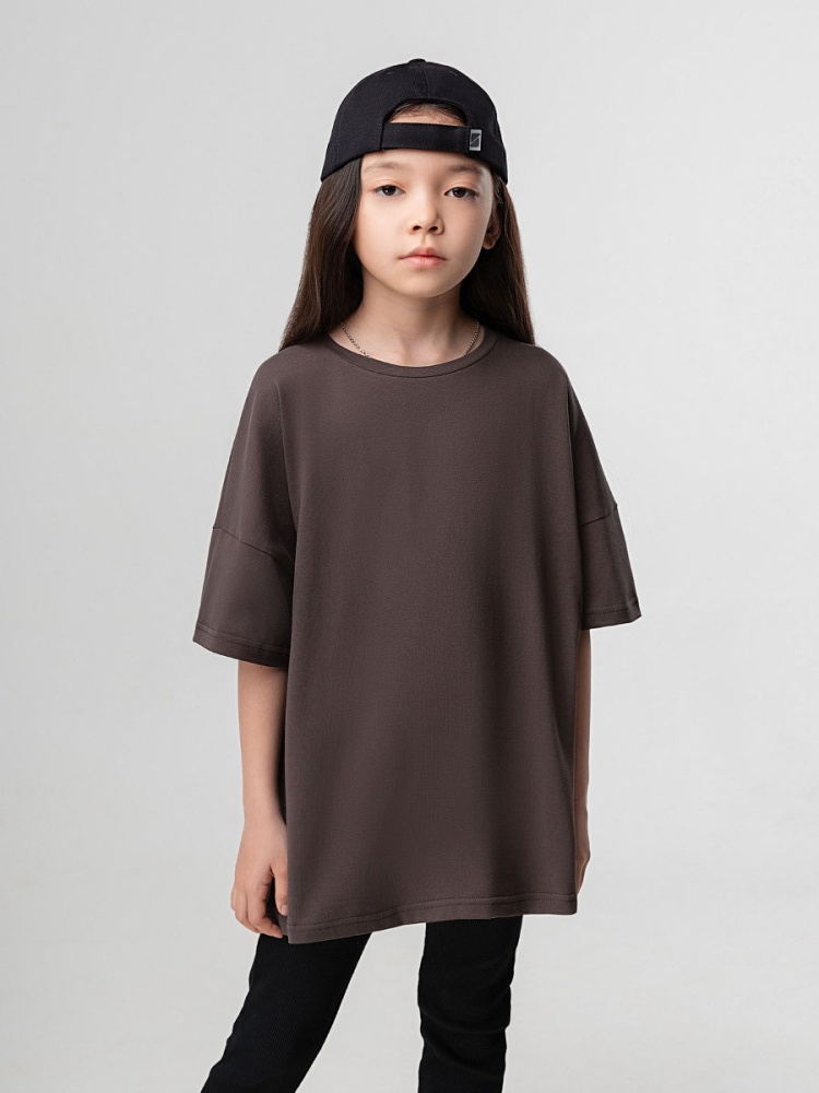 Футболка оверсайз детская. Настоятельно рекомендуем брать свой размер, так как в крой уже заложен оверсайз. Детали: короткий спущенный рукав, свободный покрой, округлый вырез горловины. Состав: кулирная гладь 92% хлопок 8% лайкра