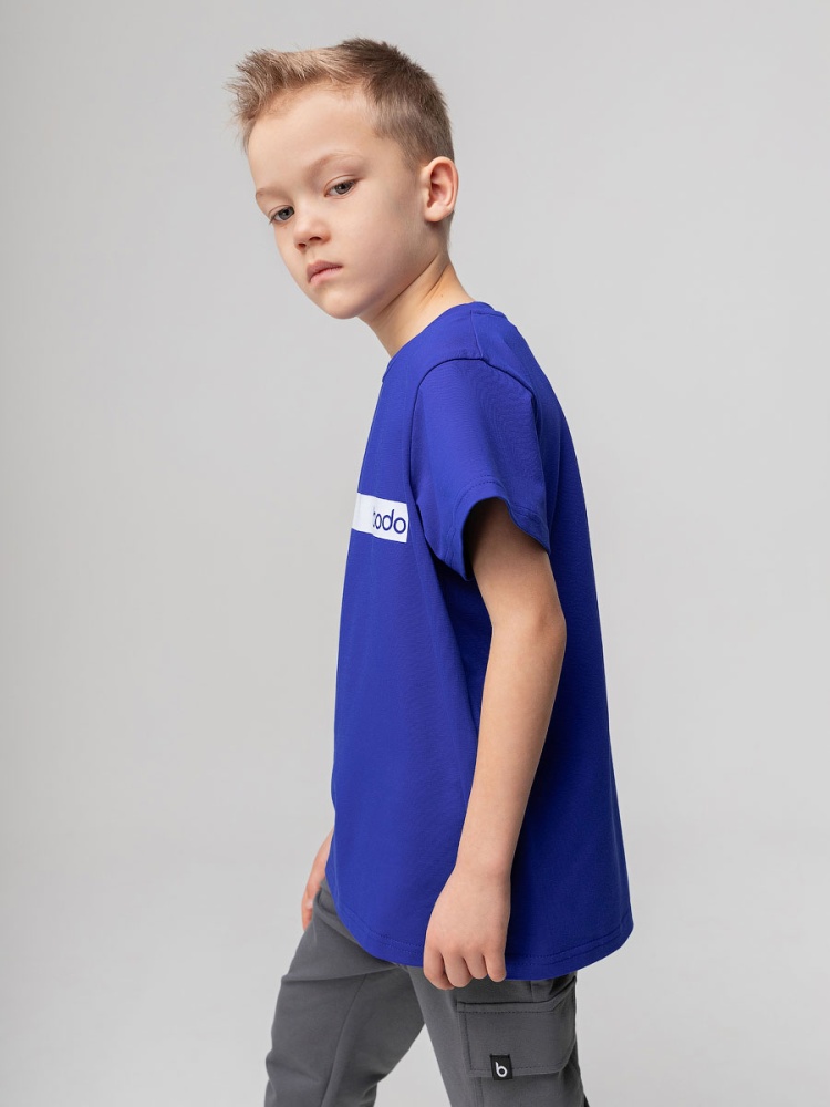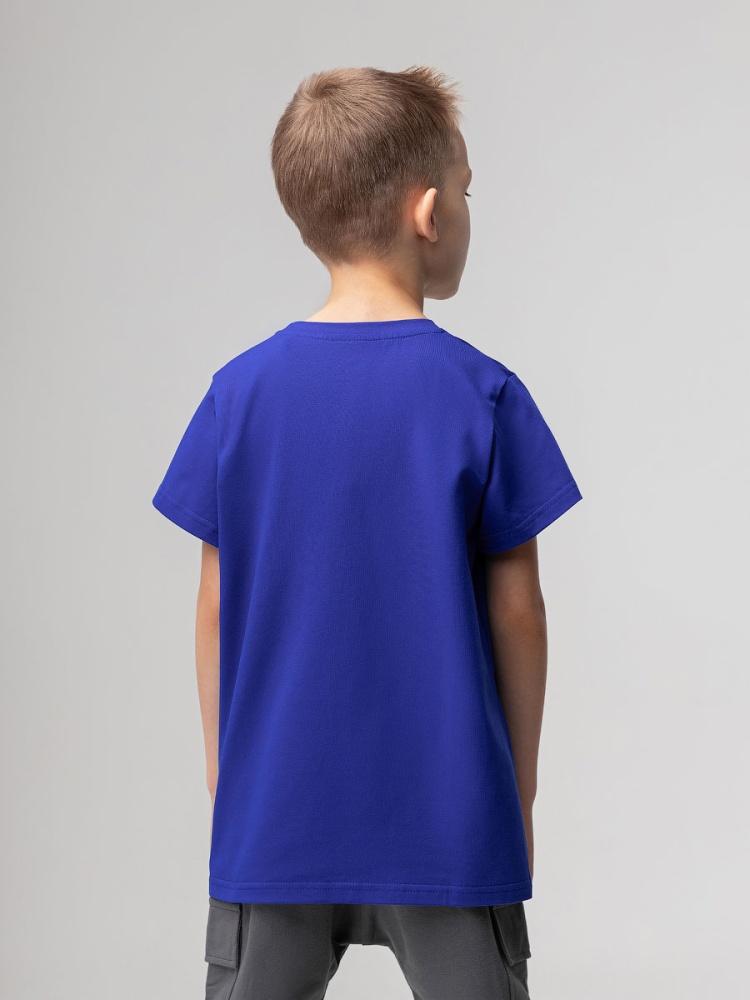 Футболка для детей дошкольного возраста. Футболка свободного силуэта с втачным коротким рукавом. Горловина футболки округлой формы. На полочке нанесена печать. Состав: кулирная гладь 92% хлопок 8% лайкра
