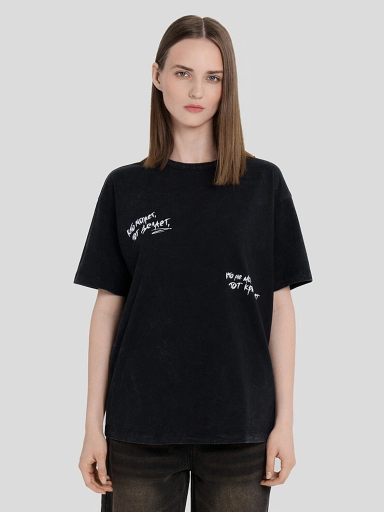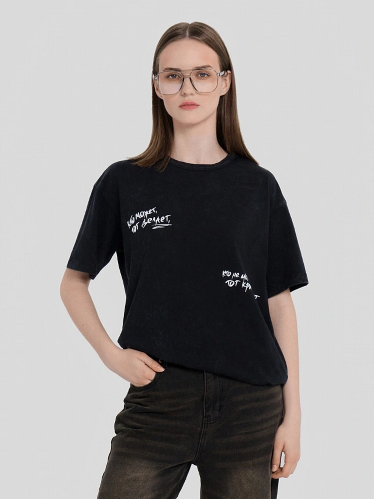 Женская футболка свободного прямого силуэта — удобный и универсальный элемент гардероба. Круглая горловина обработана для комфортной посадки, а короткие рукава делают модель подходящей для повседневной носки. Нижние срезы футболки и рукавов аккуратно обработаны швом вподгибку, что придает изделию чистый и завершенный дизайн. Натуральный хлопок обеспечивает мягкость, воздухопроницаемость и приятные тактильные ощущения, позволяя коже дышать. Эта футболка легко сочетается с джинсами, брюками или юбками, создавая стильные и удобные образы на каждый день.
