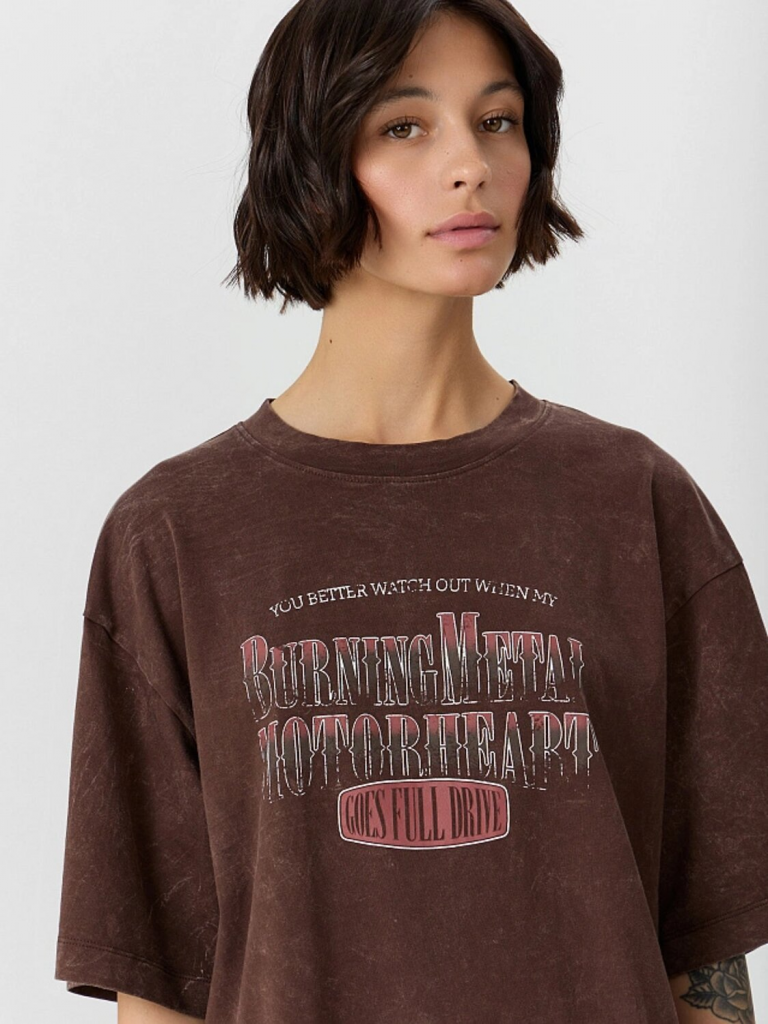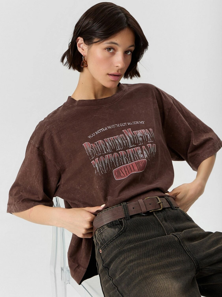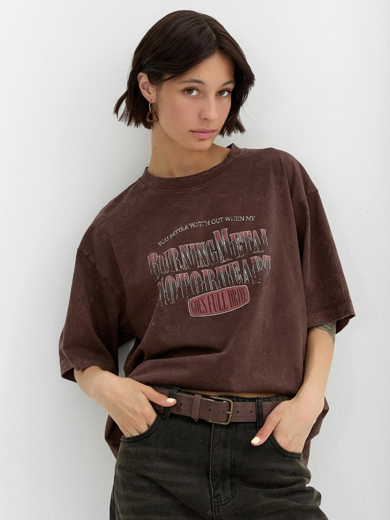 Футболка ACID WASH коричневый +печать