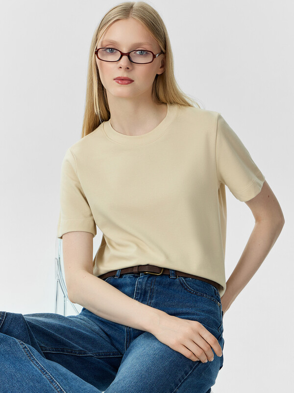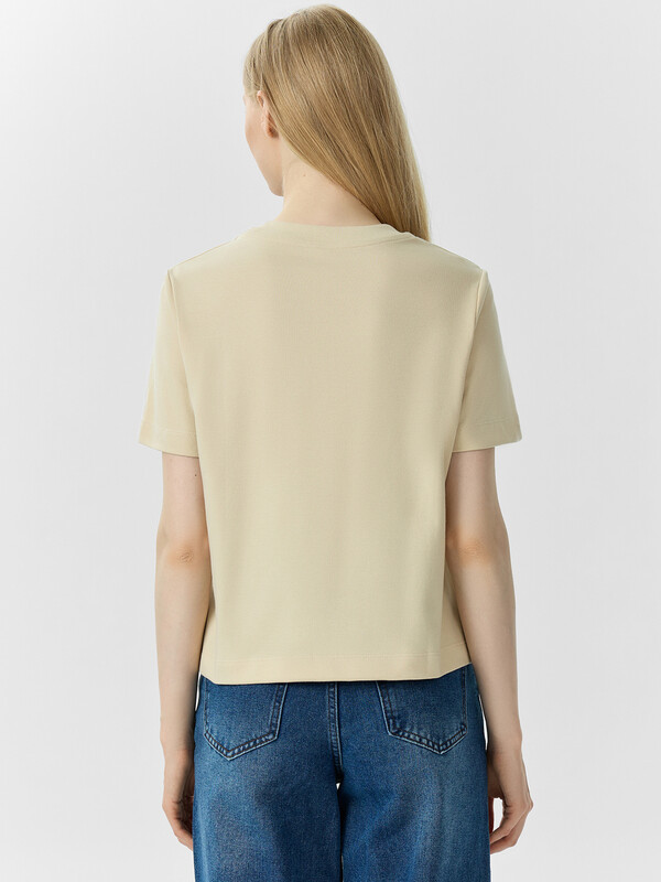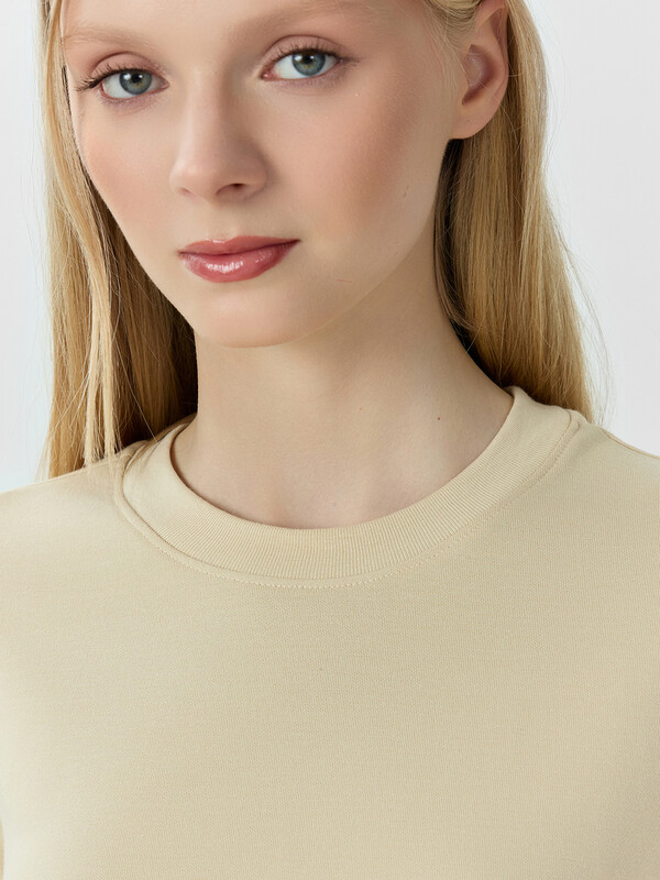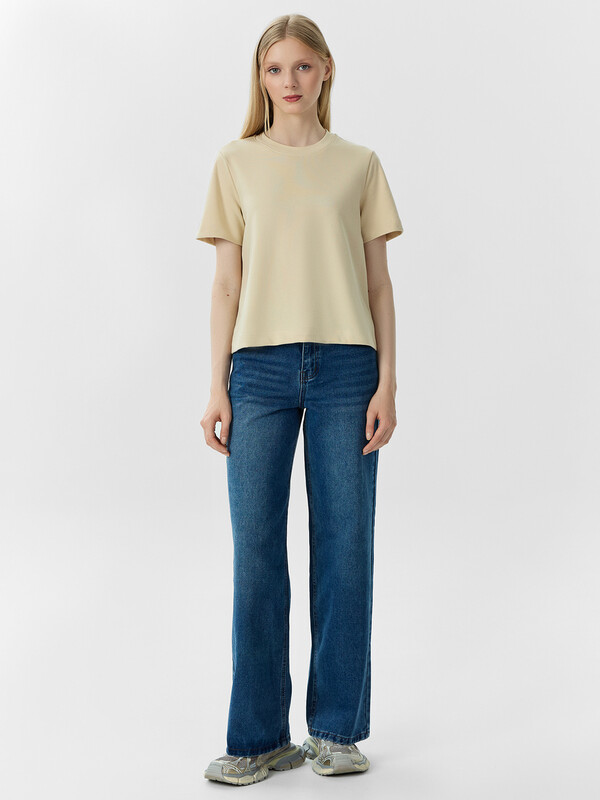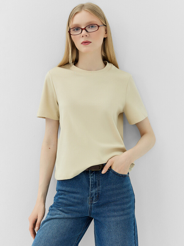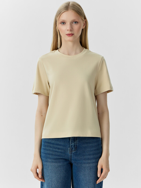 Укороченная женская футболка прямого силуэта из трикотажного материала интерлок – прекрасный выбор для повседневного и стильного образа. Модель с круглой горловиной добавляет элегантности и завершённости. Натуральный материал обеспечивает комфорт и мягкость, позволяя вам чувствовать себя уютно в течение всего дня. Этот предмет гардероба легко сочетать с различными элементами одежды, создавая стильные и индивидуальные образы на любой случай.