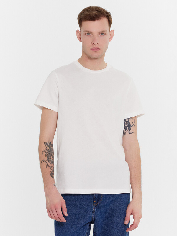 Мужская однотонная футболка из трикотажной кулирки. Силуэт прямой, расслабленный. Длина до середины бедер. Вырез классический, круглый. Рукава короткие. Актуальная футболка для стильный мужчин – универсально!