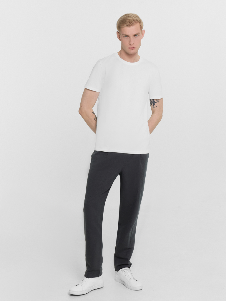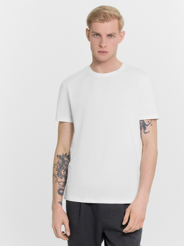 Базовая мужская футболка от Mark Formelle станет основой бесчисленного количества образов на любой случай. Модель приталенного кроя создана из хлопковой кулирки, материала, который славится своей мягкостью и воздухопроницаемостью. Ткань обеспечивает комфорт и приятные ощущения на коже, а также помогает сохранять форму изделия даже после многочисленных стирок. Круглый вырез и короткие рукава придают футболке классический и стильный вид. Эта модель отлично подходит для повседневного ношения. Она легко сочетается с джинсами, шортами или брюками, создавая удобные и стильные образы для различных ситуаций.