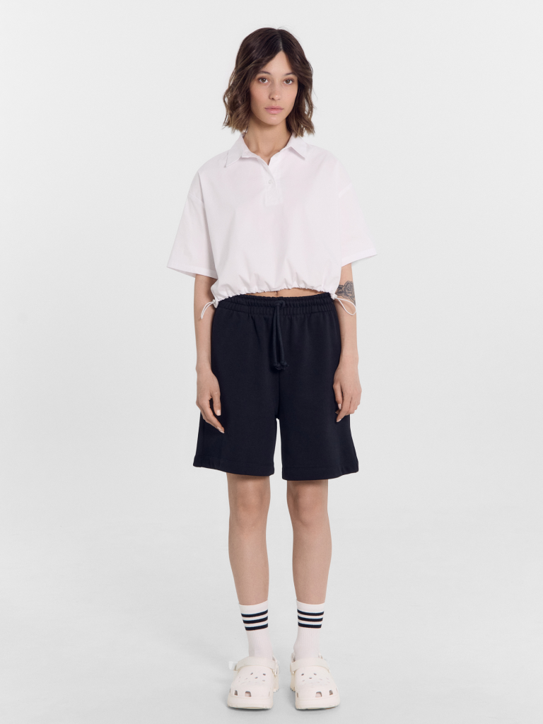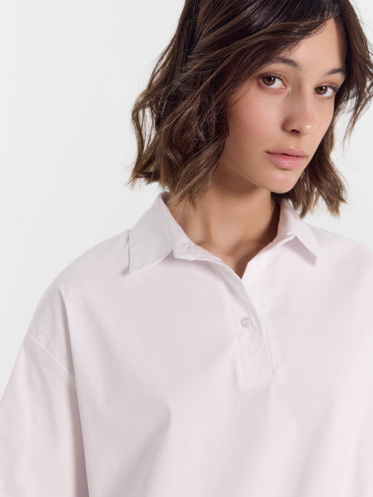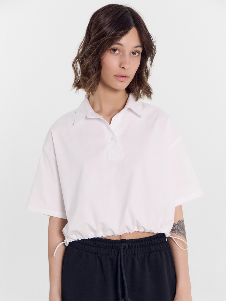 Стильное женское поло — это классический элемент гардероба, который сочетает в себе комфорт и стиль. Изготовленное из мягкого, дышащего натурального хлопка, оно обеспечивает отличную посадку и свободу движений. Короткие рукава и стояче-отложной воротник с отрезной стойкой делают его идеальным выбором для теплой погоды. Застежка на пуговицы добавляет практичности. Плечо спущено, пройма углублена. Модель слегка укорочена, по низу есть подгибка со шляпной резиной внутри и фиксаторами по боковым швам. Женское поло можно сочетать с различными элементами гардероба, будь то джинсы, шорты или юбка. Это универсальное изделие, которое подойдет для повседневной носки. Поло — это сочетание простоты, удобства и элегантности, которое всегда будет актуально.