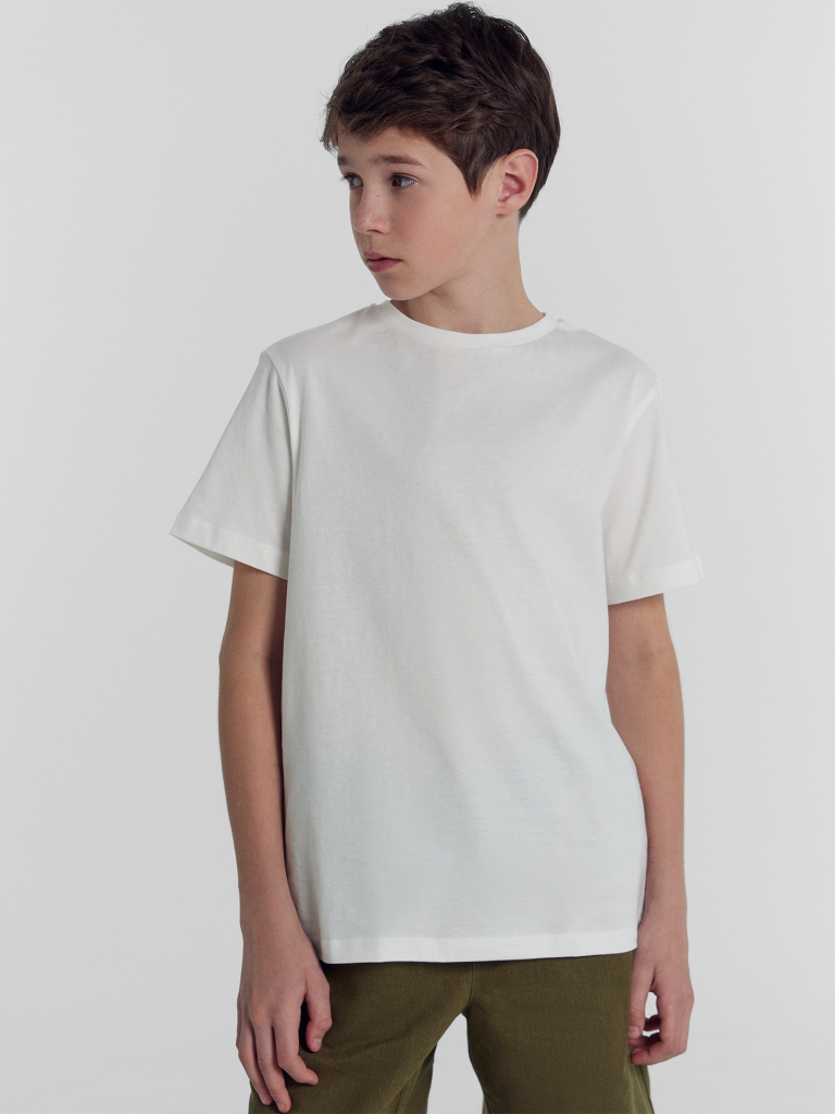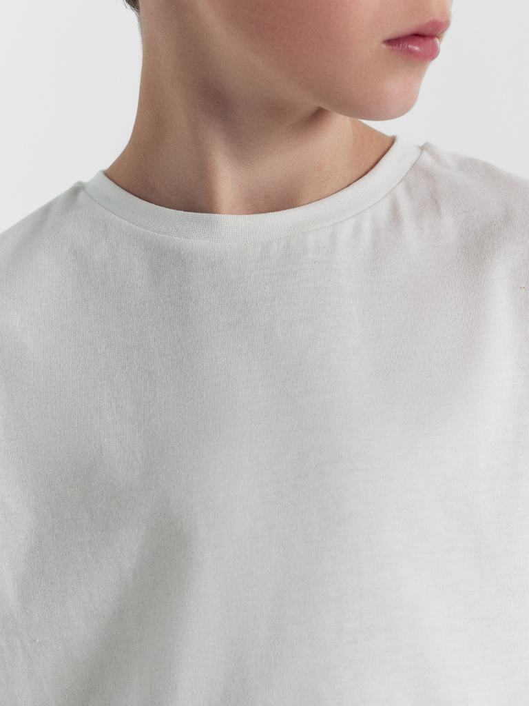 Футболка из трикотажного полотна кулирного переплетения. Силуэт свободный и прямой, перед и спинка без швов и рельефов. Длина до середины бедра. Рукава короткие, горловина круглой формы. Универсальная футболка!
