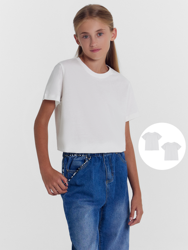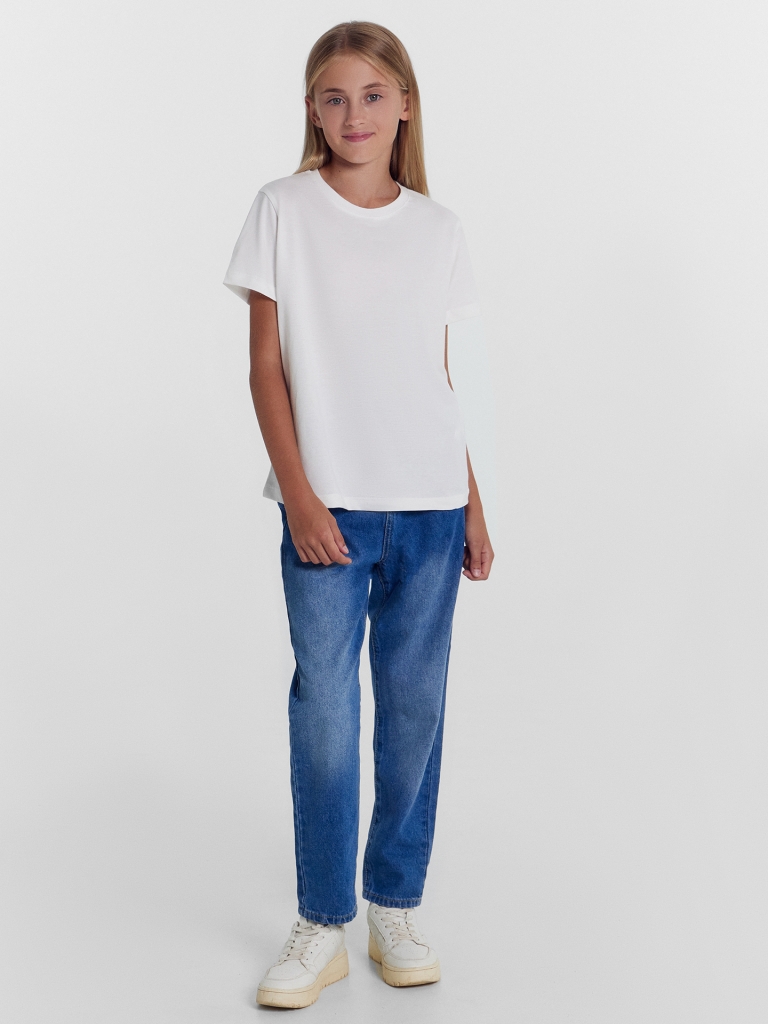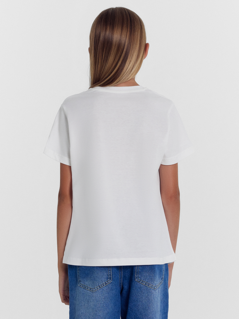 Модная футболка для девочек, выполненная из хлопковой трикотажной кулирки. Силуэт прямой. Перед и спинка без швов и рельефов. Рукава короткие, вырез классический – круглый, не глубокий. Стильная футболка с ярким дизайном!