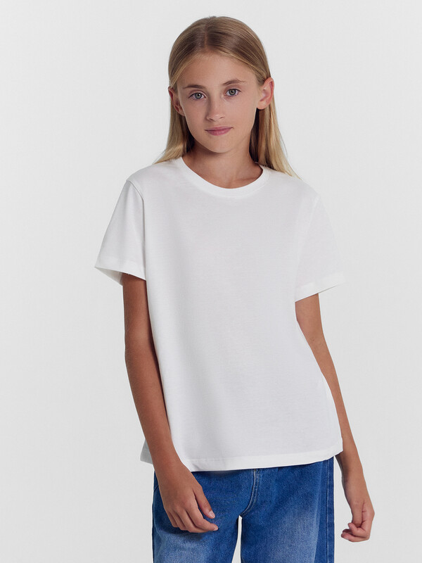 Классический круглый вырез удобно надевается и хорошо сочетается с любой одеждой. Короткие рукава не сковывают движения во время активных игр, занятий спортом или повседневных занятий. Универсальный белый цвет служит идеальным фоном для ярких принтов и легко комбинируется с юбками, шортами и брюками любого цвета.