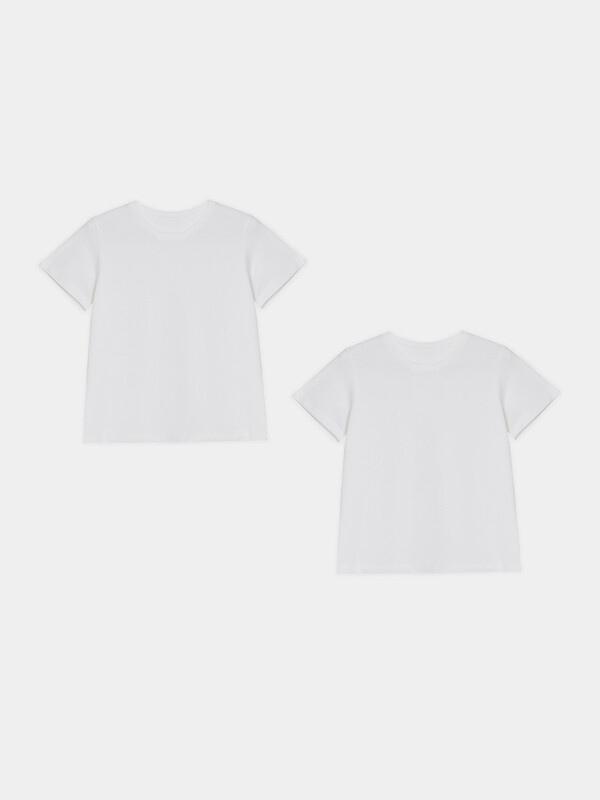 Белый набор из двух футболок для девочек — это основа стильного и практичного гардероба. Модели из нежной кулирной глади обладают особой мягкостью и легкостью. Прямой силуэт с бесшовной спинкой и передом обеспечивает комфорт при движении, не раздражая нежную кожу ребенка.