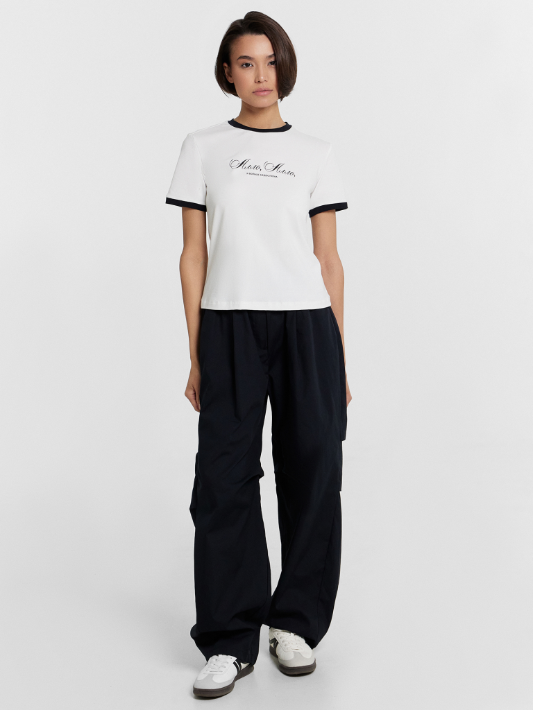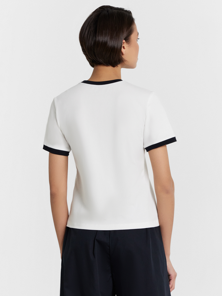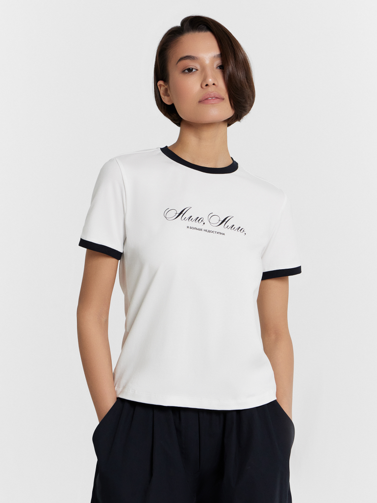 Футболка женская Mark Formelle x Ольга Бузова. Лимитированная коллекция "Мне можно все". Укороченная модель прилегающего силуэта — это стильное и комфортное решение для создания современного и изящного образа. Круглая горловина добавляет классический акцент, а короткие рукава с манжетами подчеркивают аккуратность и завершенность дизайна. Нижний срез изделия обработан швом вподгибку, что обеспечивает долговечность и эстетичный вид. Модель выполнена из эластичного хлопка, который мягко прилегает к коже, дарит комфорт и позволяет телу дышать. Эта футболка станет отличным выбором для теплых дней и стильных ансамблей, гармонично сочетаясь с другими элементами гардероба. Рекомендуем!