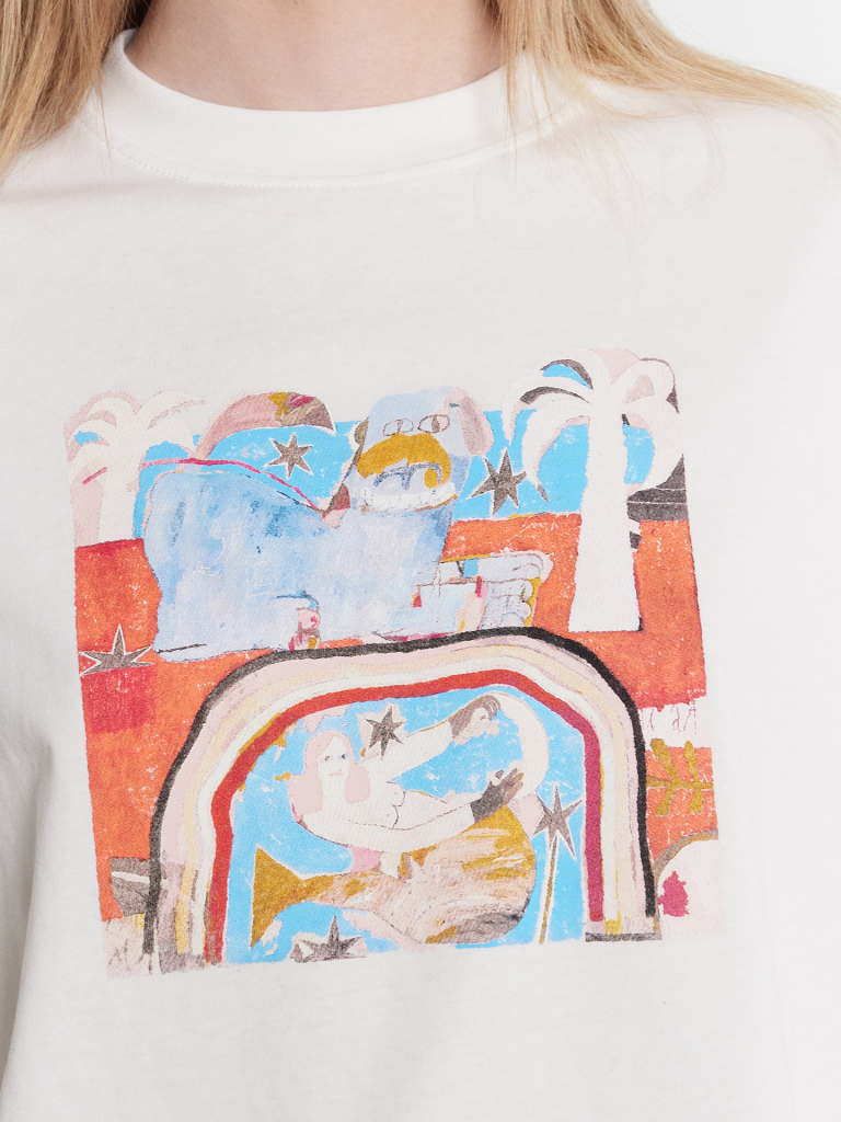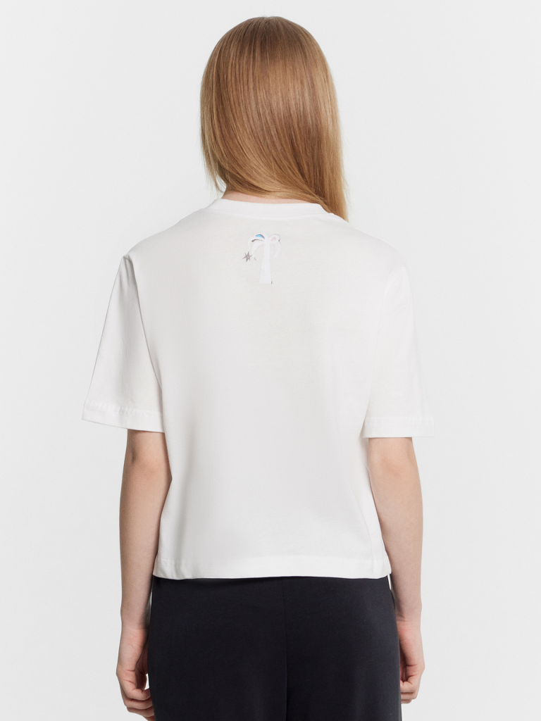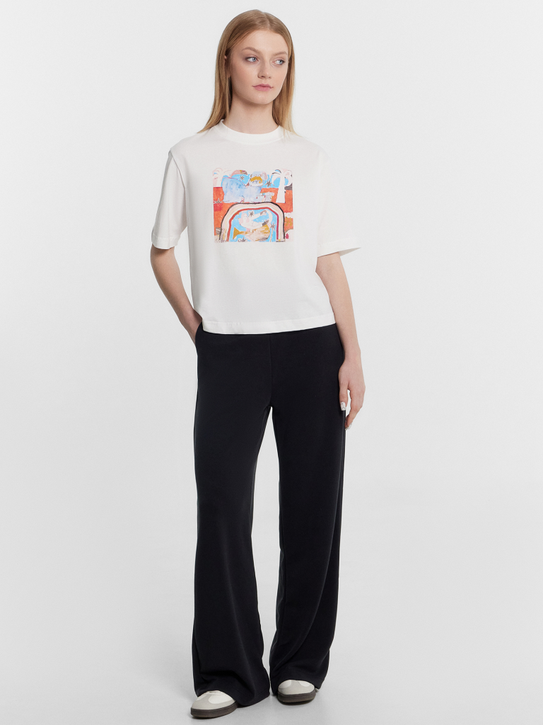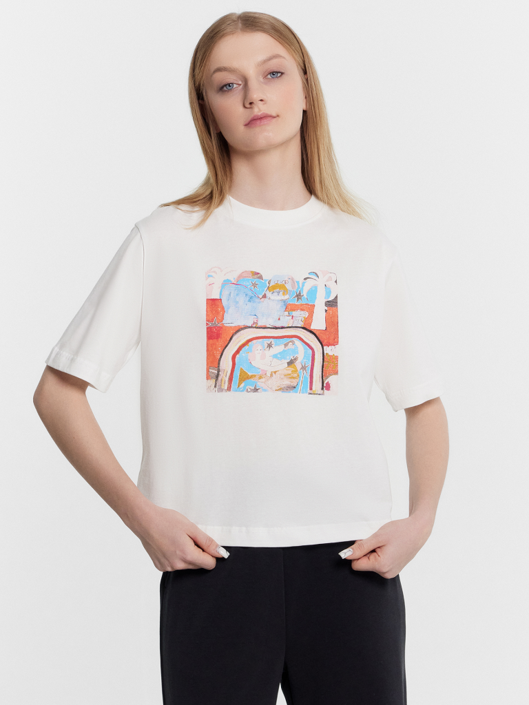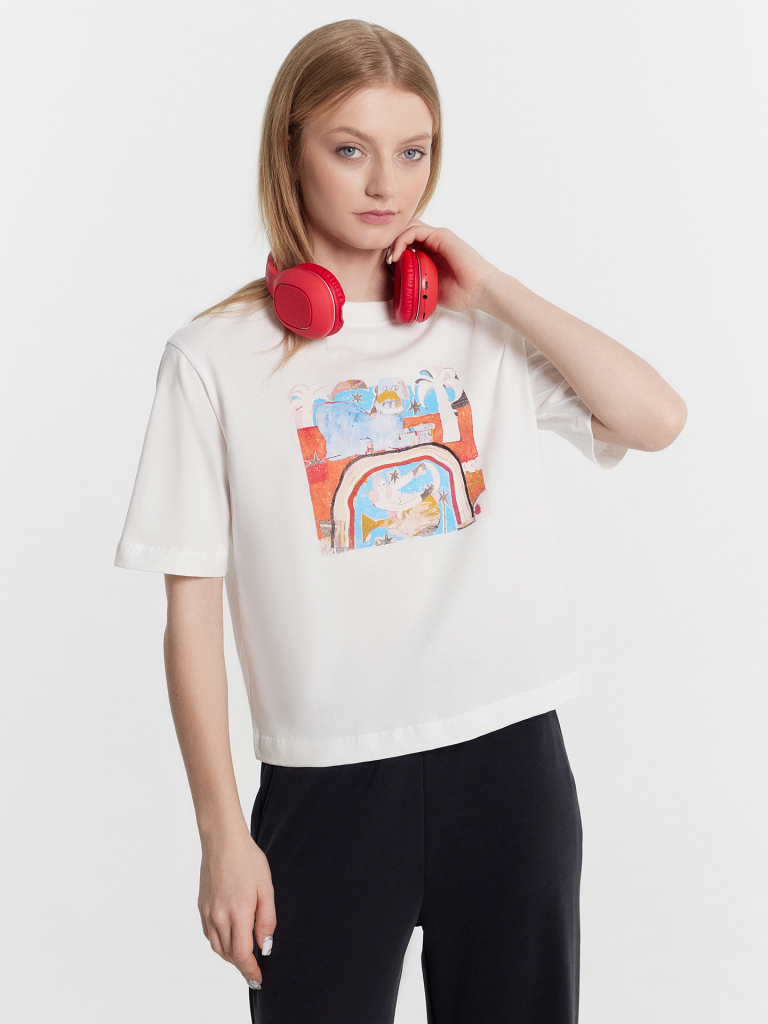 Эта женская футболка оверсайз станет незаменимой частью вашего гардероба благодаря своему универсальному и стильному дизайну. Выполненная из мягкой и легкой трикотажной кулирки, она обеспечивает непревзойденный комфорт на протяжении всего дня. Округлая горловина и короткие рукава придают модели современный вид, который идеально подойдет для любого повседневного образа. Свободный крой этой модели позволяет наслаждаться свободой движений и непринужденностью. Она отлично сочетается с различными предметами гардероба, такими как джинсы, шорты, леггинсы или юбки, что делает её идеальным вариантом для создания разнообразных и стильных ансамблей. Футболка легко впишется как в повседневные, так и в более нарядные образы, придавая им свежесть и актуальность.