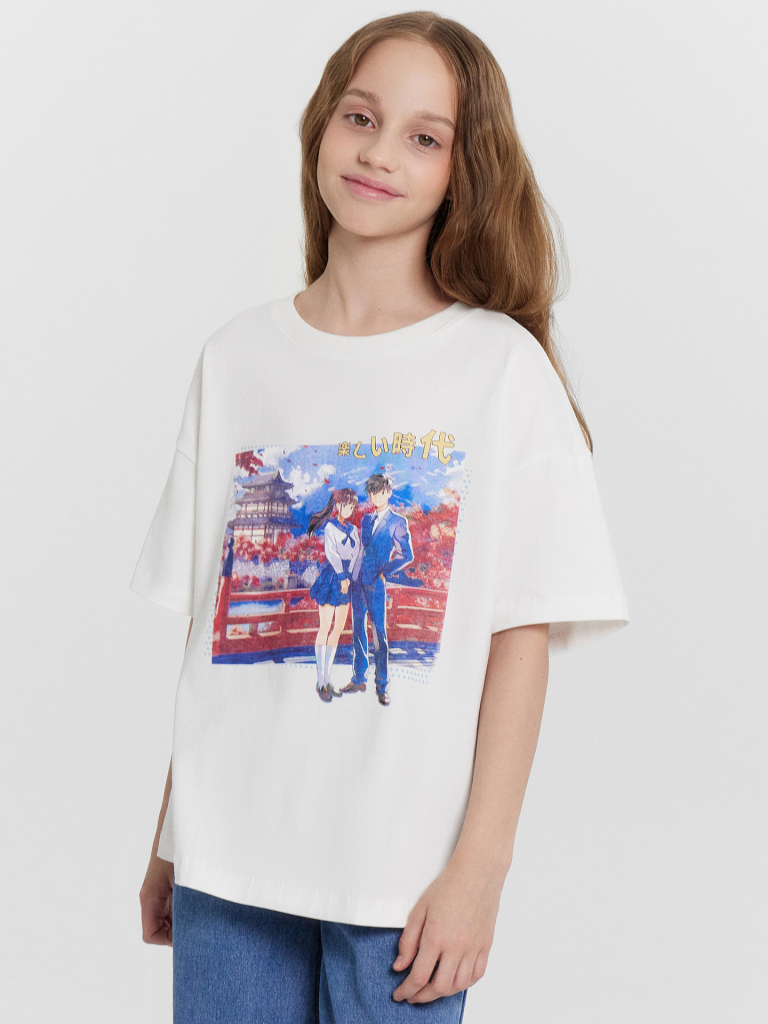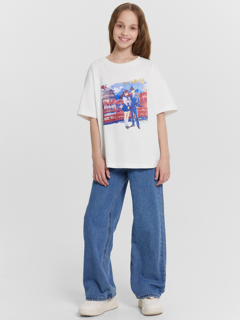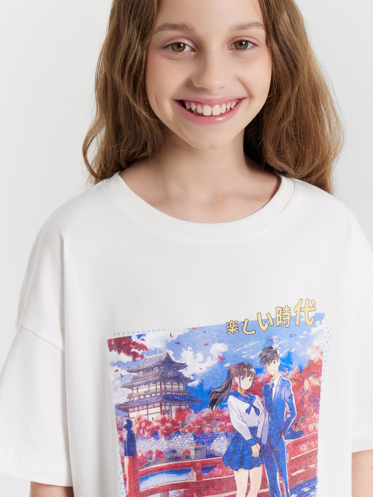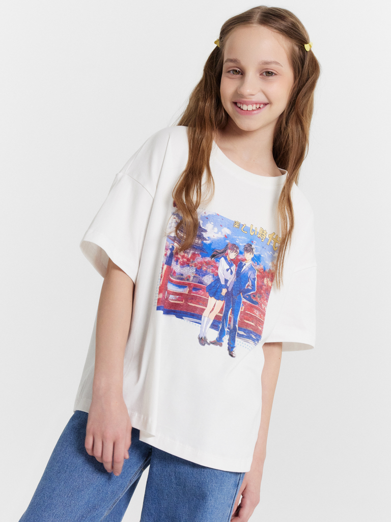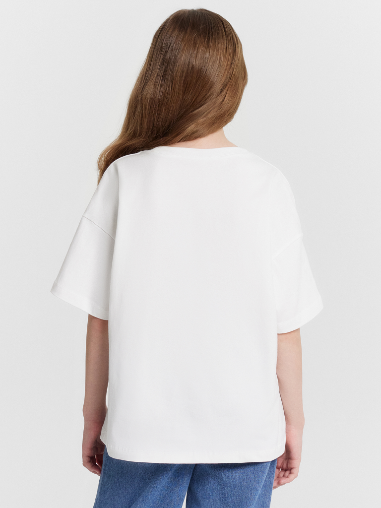 Футболка из трикотажного полотна кулирного переплетения. Силуэт свободный, длина до середины бедра. Рукава короткие, горловина круглая. Дизайн футболки наверняка понравится вашей моднице!
