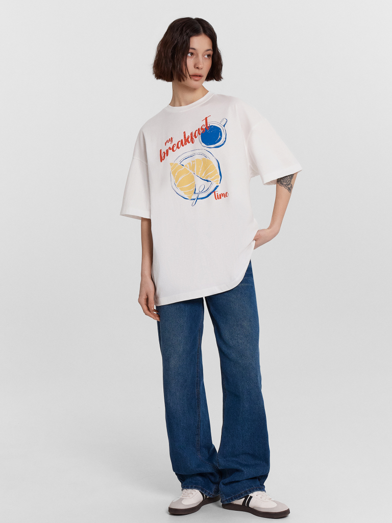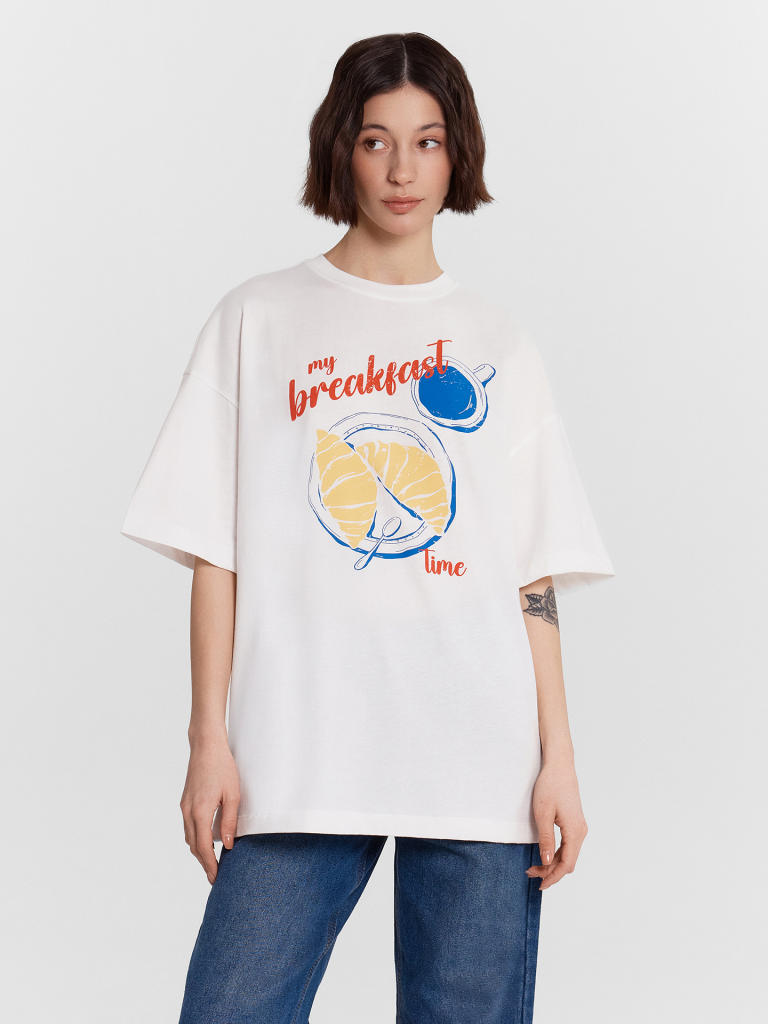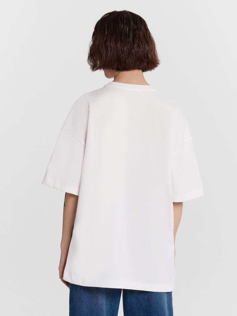 Эта женская футболка оверсайз из кулирки станет отличным дополнением вашего гардероба. Горловина круглой формы, спущенное плечо и углубленная пройма создают стильный и комфортный образ. Широкий рукав длиной чуть выше локтя добавляет непринужденности и комфорта. Изделие выполнено из нежной хлопковой кулирки — материала, обладающего отличной воздухопроницаемостью, позволяющего коже дышать и сохранять свежесть в течение всего дня. Кулирка также невероятно мягкая и приятная на ощупь, что обеспечивает комфорт при носке. Такая футболка станет идеальным выбором для повседневной носки, гарантируя стильные и уютные образы каждый день.