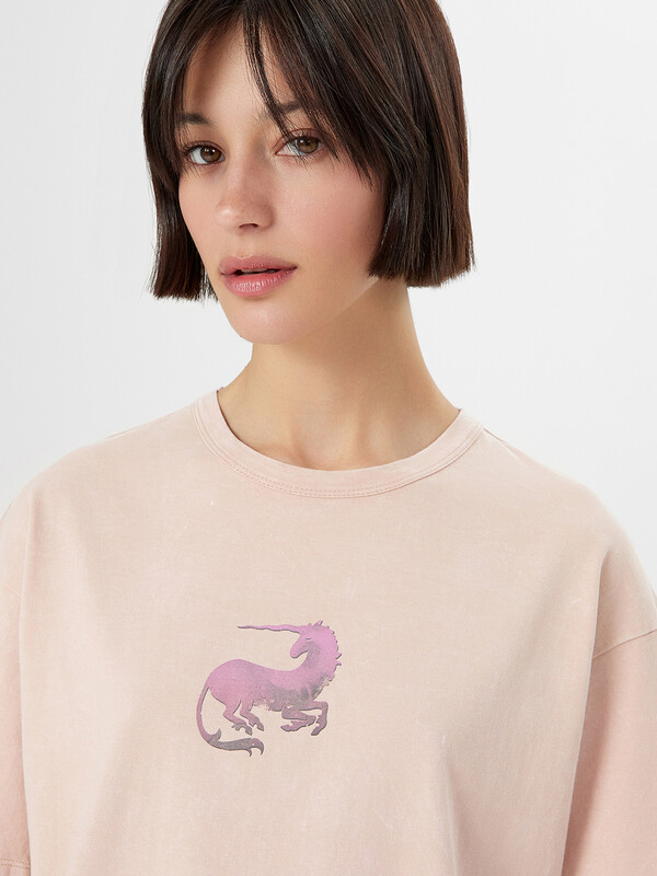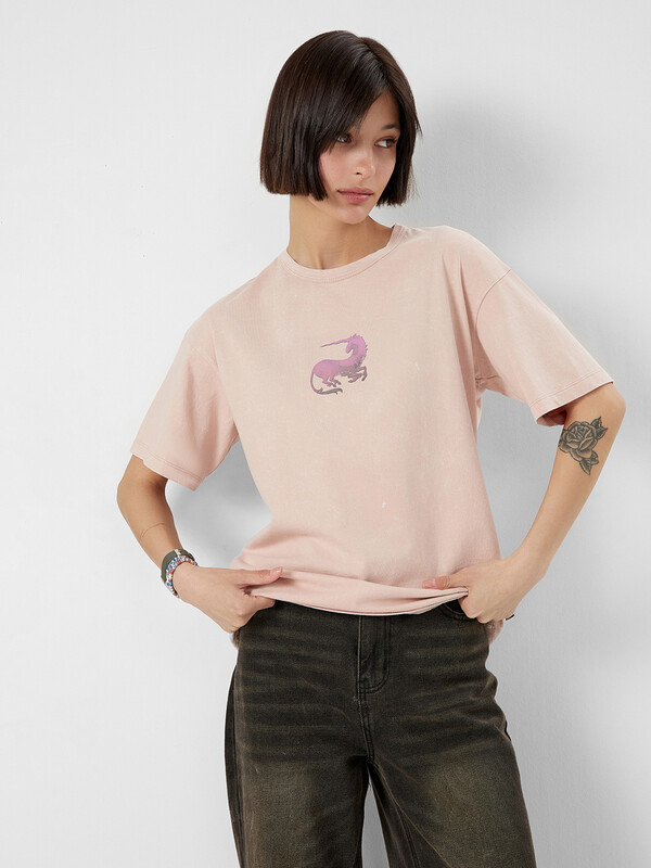 Женская футболка прямого свободного силуэта — это базовая и универсальная модель, которая легко впишется в повседневный гардероб. Классическая круглая горловина придаёт образу аккуратность, а короткие рукава обеспечивают комфорт в теплое время года. Свободная посадка не сковывает движений и подходит для любого типа фигуры, создавая расслабленный и современный силуэт. Нижние срезы изделия и рукавов аккуратно обработаны швом вподгибку, что подчеркивает качество исполнения и сохраняет форму после стирок. Натуральный хлопок в составе ткани делает футболку мягкой, дышащей и приятной к телу — отличный выбор для повседневной носки, прогулок или отдыха.