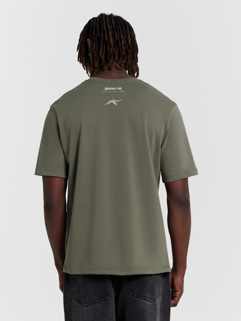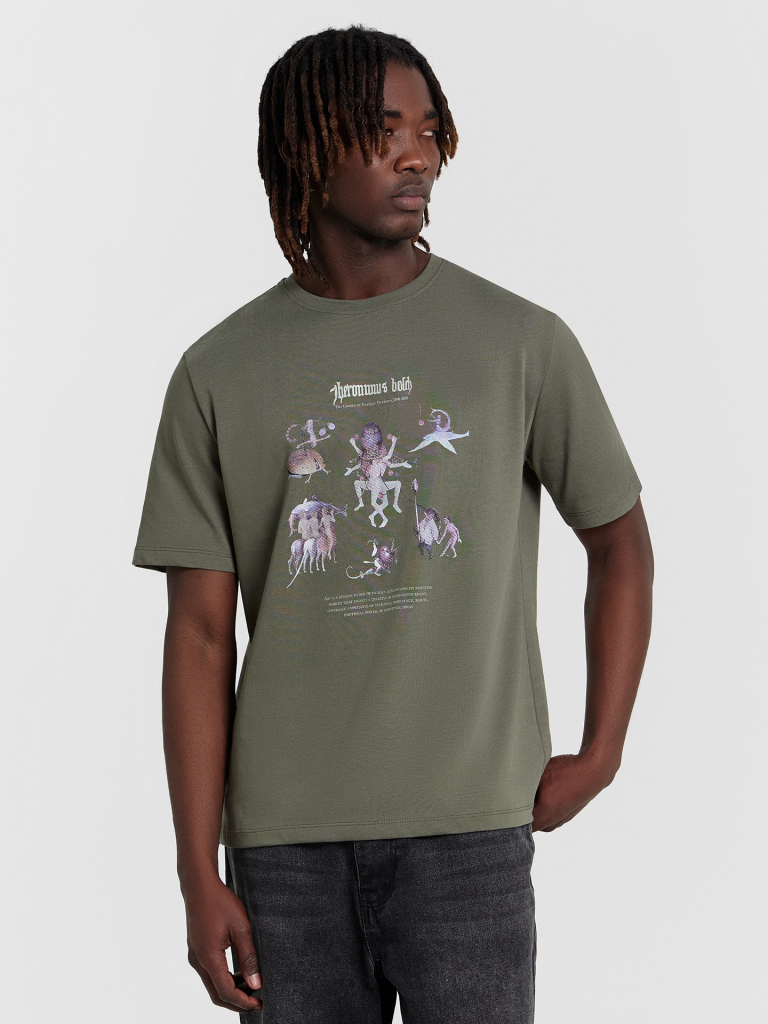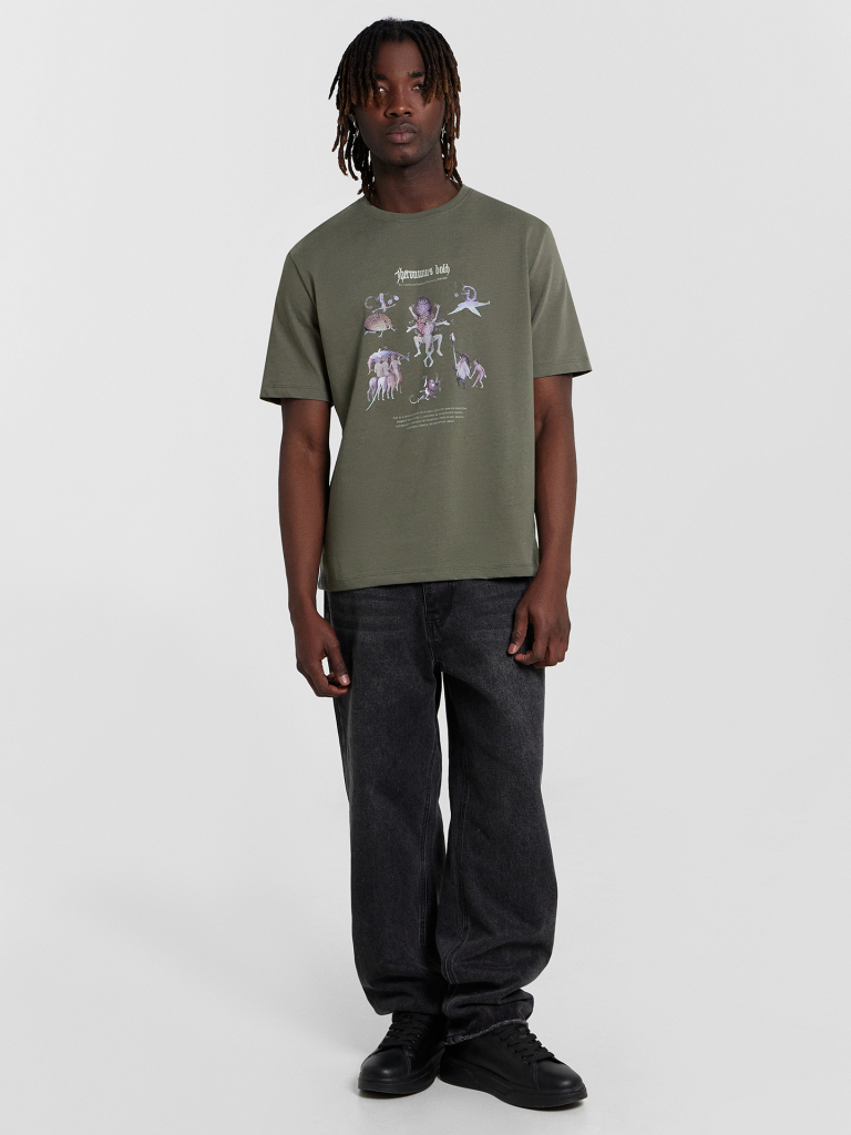 Эта стильная мужская футболка с принтом — отличный выбор для современного образа! Модель прямого силуэта обеспечивает комфортную посадку, а слегка спущенная линия плеча придает расслабленный и актуальный вид. Круглая горловина обработана обтачкой из рибаны, что гарантирует эластичность и сохранение формы. Короткие рукава делают футболку универсальной для повседневной носки, а аккуратная обработка нижних срезов швом вподгибку повышает долговечность и эстетичный внешний вид изделия. Футболка выполнена из натуральной хлопковой кулирки, которая обладает мягкостью, воздухопроницаемостью и приятными тактильными характеристиками, обеспечивая комфорт в течение всего дня. Яркий принт добавляет индивидуальности, позволяя выразить свой стиль. Эта модель легко комбинируется с джинсами, шортами или спортивными брюками, создавая акутальные и непринужденные образы! Прекрасный выбор для тех, кто ценит удобство, стиль и качественные материалы.