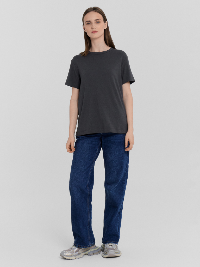 Футболка женская прямого силуэта из трикотажного полотна кулирка.