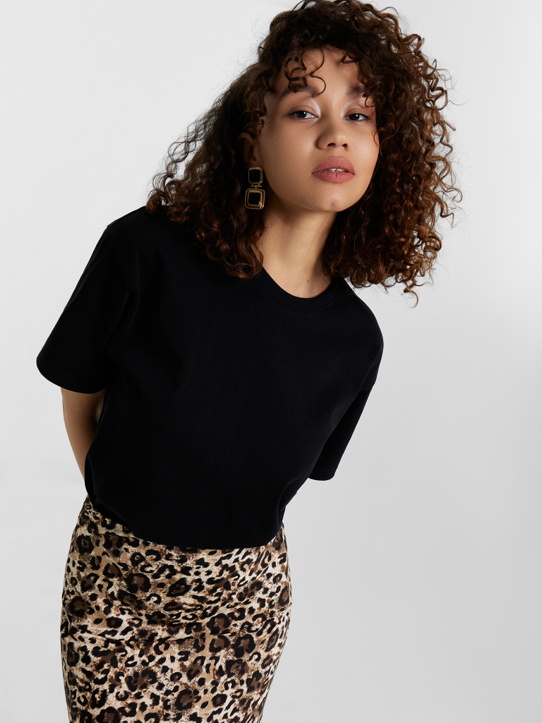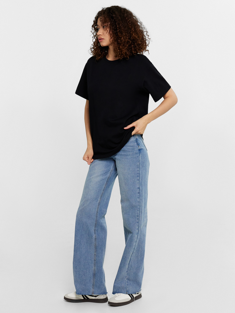 Базовая футболка от Mark Formelle – это действительно удачное вложение в женский гардероб. Круглая форма горловины и короткие рукава придают ей классический и универсальный вид. Спущенная линия плеча обеспечивает дополнительный комфорт и стиль. Выполненная из хлопковой кулирки, эта футболка гарантирует мягкость и воздухопроницаемость, делая ее идеальным выбором для повседневного ношения. Она легко сочетается с различными элементами гардероба, создавая множество стильных образов. Отличный выбор для базового гардероба!
