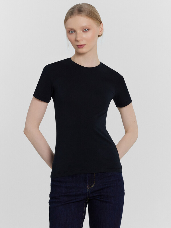Женская футболка прилегающего силуэта — это классика базового гардероба, которая идеально подчеркивает фигуру и обеспечивает комфорт в повседневной носке. Круглая горловина придаёт изделию лаконичный и универсальный вид, а короткие рукава делают модель подходящей для теплых дней и многослойных образов. Нижние срезы футболки и рукавов обработаны швом вподгибку, что добавляет аккуратности и долговечности изделию. Материал, из которого выполнена модель, — хлопок с небольшим содержанием эластичных волокон, обеспечивает мягкость, воздухопроницаемость и свободу движений. Такая футболка легко сочетается с джинсами, юбками и шортами, что делает её идеальным выбором для повседневного или спортивного стиля. Простой и практичный элемент гардероба, который выделяется качеством и удобством! Рекомендуем.