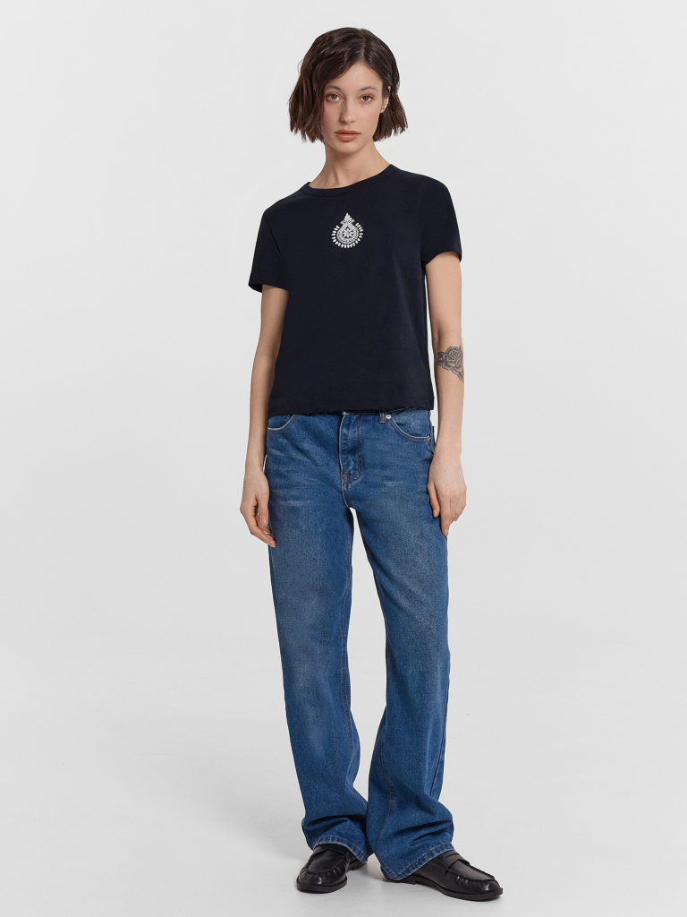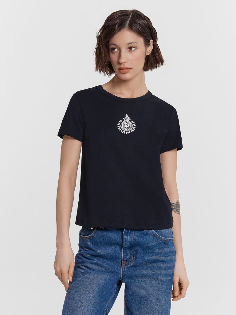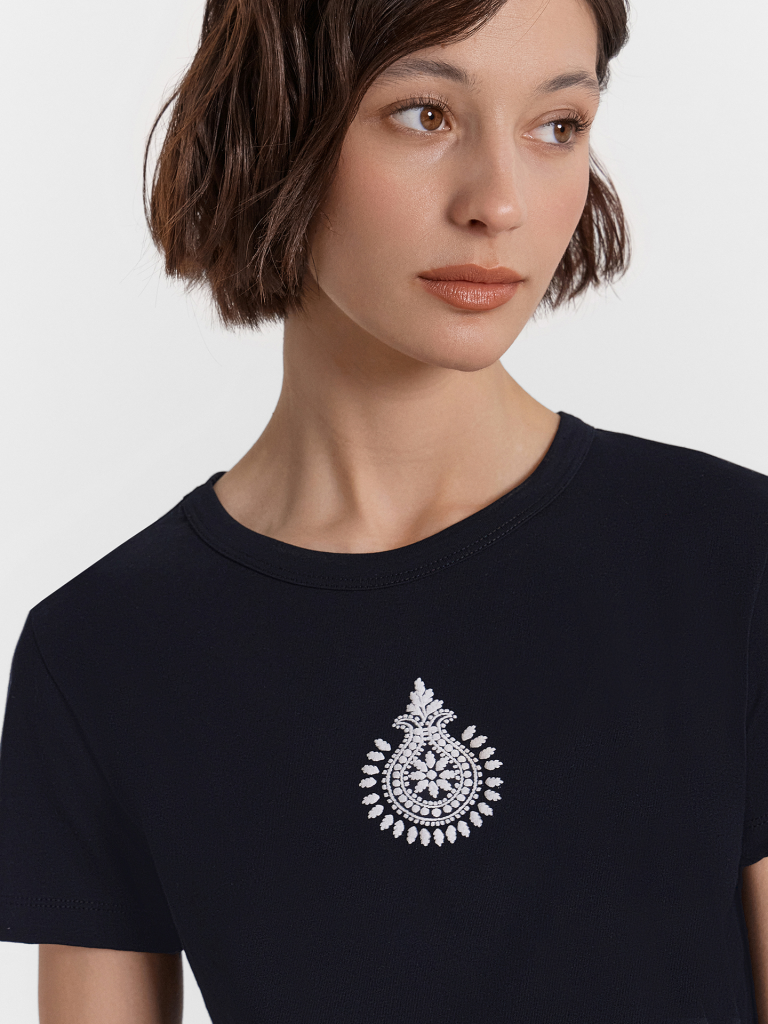 Стильная укороченная футболка прямого силуэта — идеальный элемент гардероба для создания современных и комфортных образов. Круглая горловина добавляет классический акцент, а короткие рукава делают ее универсальной и удобной для носки в любую погоду. Нижние срезы изделия обработаны швом вподгибку, что обеспечивает аккуратный внешний вид и долговечность модели. Элегантность и простота этой футболки позволяют легко сочетать ее как с джинсами, так и с юбками, создавая стильные комбинации для любого случая! Рекомендуем!