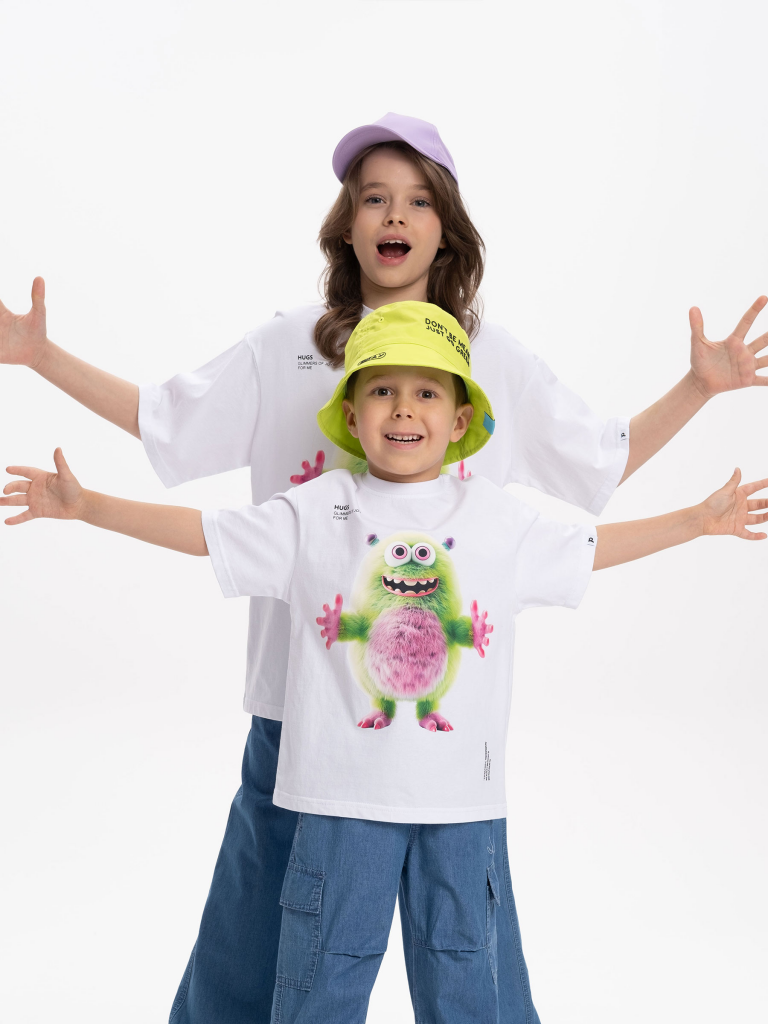 Детская футболка унисекс среднего объема. Прикольная нарядная футболка свободного силуэта со спущенным плечом не будет стеснять движений ребёнка. Вырез горловины отделан эластичной рибаной - голова не застрянет. Главная фишка футболки — яркий милый принт, изображающий персонажа, сгенерированного нейросетью (искусственным интеллектом). Это супермодный тренд! Принт эластичный и стойкий — без проблем переносит многочисленные стирки, не теряя своей яркости. На принте изображён забавный пушистый чудик (монстрик) зеленого и сиреневого цветов + надписи "обнимашки", "искры радости для меня" и "создано с помощью искусственного интеллекта". Широкая размерная сетка позволяет приобрести такую футболку как малышу в детский садик так и подростку. . Белые футболки подходят для носки летом, осенью и весной (демисезон), а также зимой . Цвет товара на экране вашего устройства может отличаться от цвета изделия вживую.
