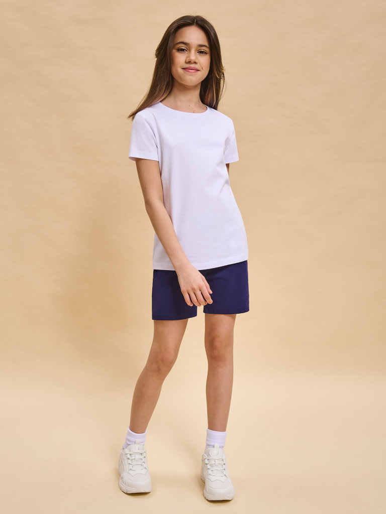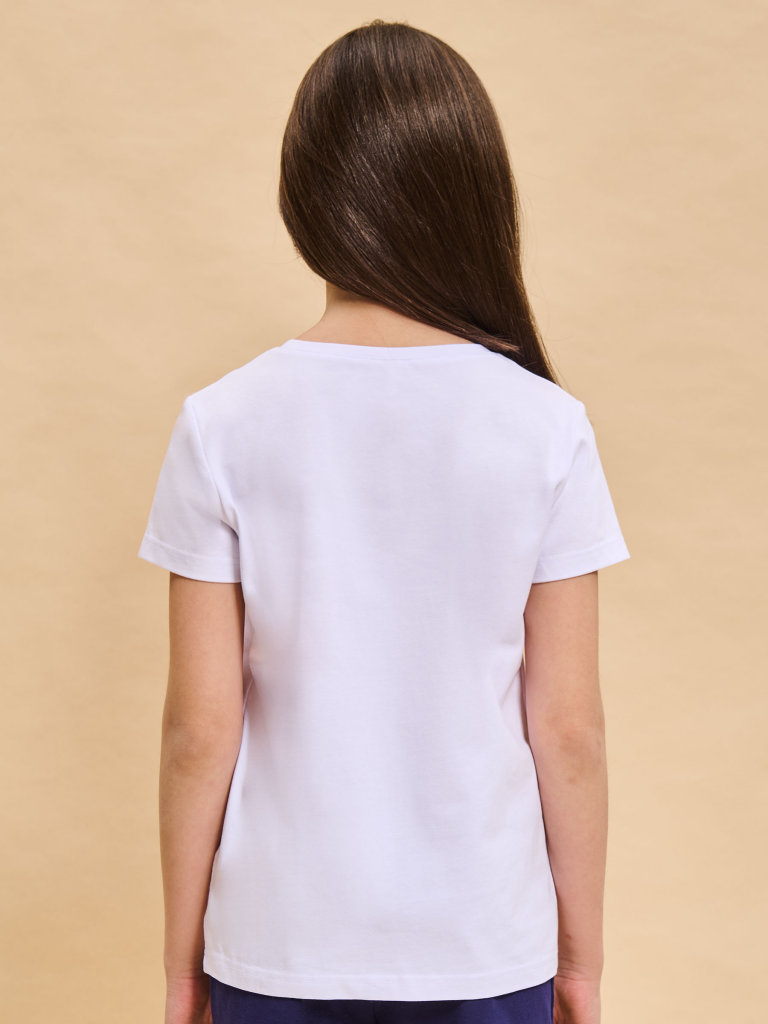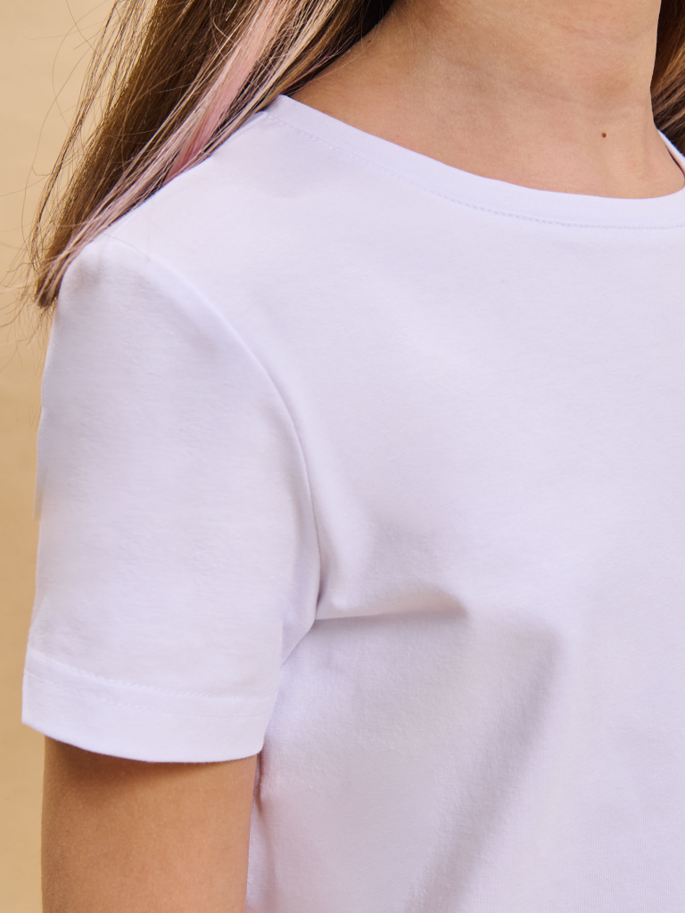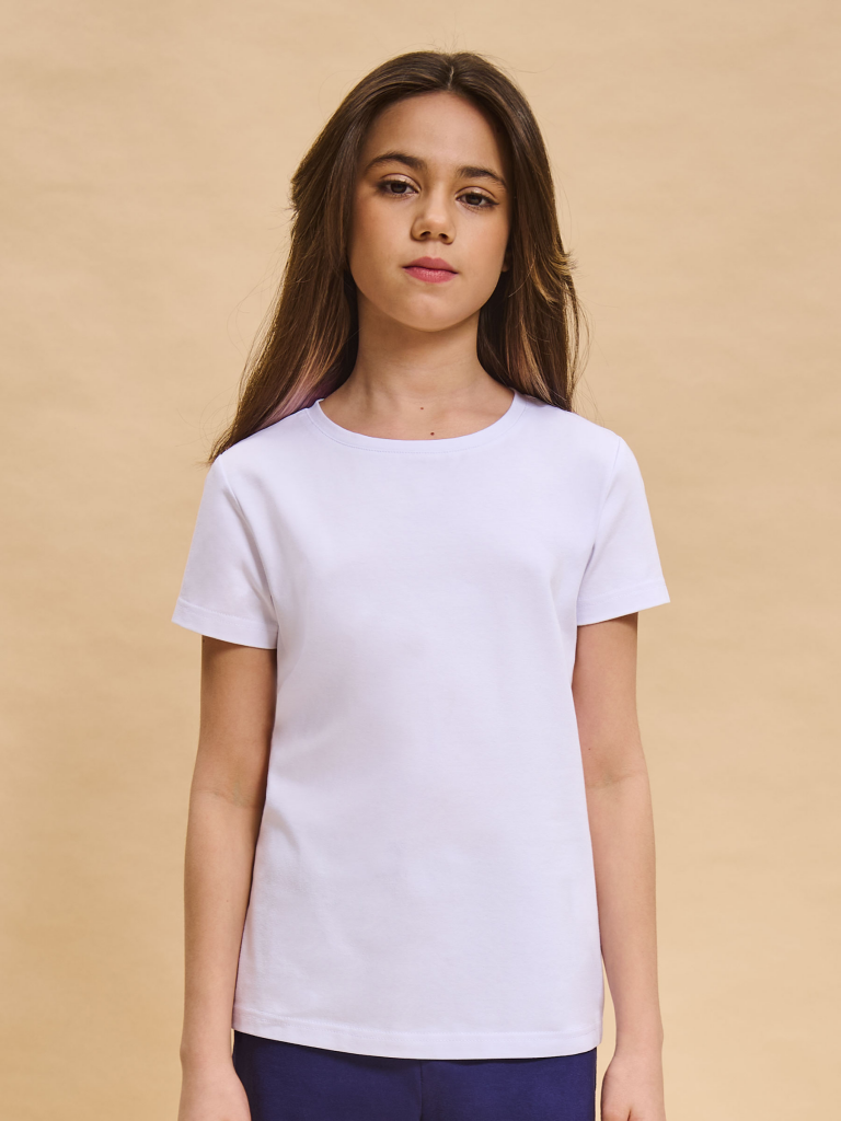 Футболка на девочку школьная. Отлично подходит для уроков физкультуры, а также как первый слой одежды — под свитер, джемпер. Детская футболка умеренного объёма комфортной длины прекрасно садится на девочек с любой фигурой. Горловина обработана эластичной рибаной — не растягивается, удобно надевать, не тугая. В составе ткани преобладает высококачественный хлопок плотностью 180 гр/м2 — изделие хорошо пропускает воздух, позволяя коже дышать, ребёнку не жарко, что особенно важно во время занятий спортом. Благодаря эластану майка сохраняет отличную форму в течение длительного времени. Футболка однотонная, без декоративных элементов. Футболка для девочки белая легко сочетается с любыми брюками, юбками, шортами. Футболка классическая — идеальный выбор для школьной формы на каждый день. Помните о правильном уходе за изделием: рекомендуется стирать при температуре не выше 30 °C, без предварительного замачивания, с изнанки. Это поможет сохранить качество и цвет футболки на длительное время. Не забывайте о выборе правильного размера. Используйте таблицу размеров на фотографии, чтобы выбрать подходящий вариант для вашей девочки. Обратите внимание, что цвет товара на экране вашего устройства может отличаться от реального.