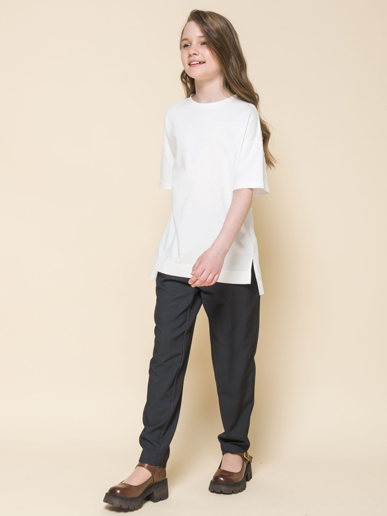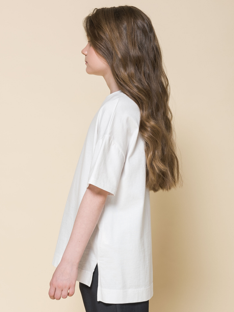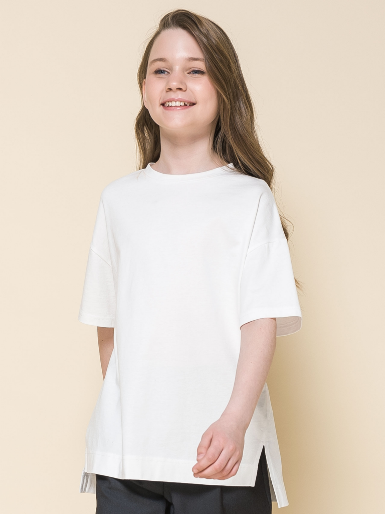 Детская футболка свободного силуэта со спущенным плечом для девочки. Перепад длин переда и спинки — один из актуальных модных трендов. По бокам разрезы — футболка школьная для девочек не будет сковывать движений ребёнка. Благодаря свободному силуэту футболка однотонная прослужит долго, её можно брать на вырост. Ребёнок растёт — футболка для девочек не становится малой. Изделие выполнено из 100% высококачественного хлопка плотностью 180 гр/м2 — ткань мягкая, приятная на ощупь и отлично пропускает воздух. Лаконичный дизайн позволяет сочетать футболку с любыми брюками и юбками, создавая разнообразные стильные образы. Отличный вариант одежды для школы и не только. Помните о правильном уходе за изделием: рекомендуется стирать при температуре не выше 30 °C, без предварительного замачивания, с изнанки. Это поможет сохранить качество и цвет футболки на длительное время. Не забывайте о выборе правильного размера. Используйте таблицу размеров на фотографии, чтобы выбрать подходящий вариант для вашей девочки. Обратите внимание, что цвет товара на экране вашего устройства может отличаться от реального.