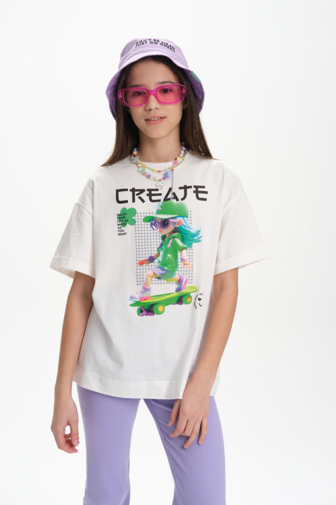 Хлопковая футболка для девочки из премиального трикотажа. Подойдет как малышам в детский сад так и подросткам. Подходит для круглогодичного ношения весной, летом, осенью и зимой.