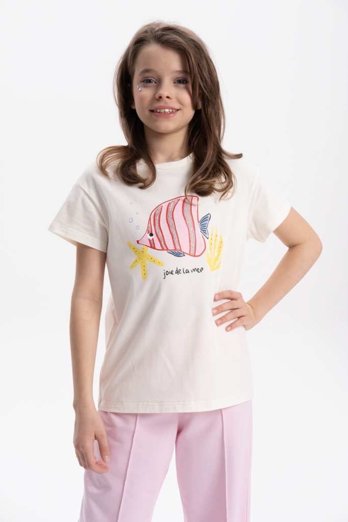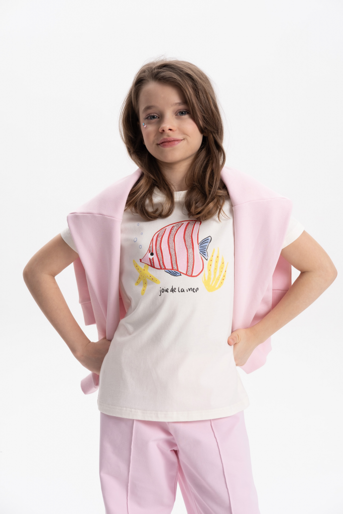 Хлопковая футболка для девочки из премиального трикотажа. Подойдет как малышам в детский сад так и подросткам. Подходит для круглогодичного ношения весной, летом, осенью и зимой.
