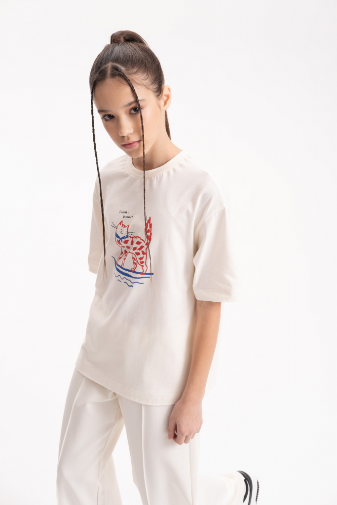 Хлопковая футболка для девочки из премиального трикотажа. Подойдет как малышам в детский сад так и подросткам. Подходит для круглогодичного ношения весной, летом, осенью и зимой.